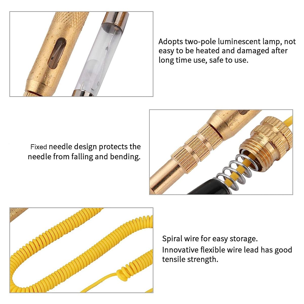 Good quality: Innovative flexible wire lead has good tensile strength. Telescopic needle design protects the needle from falling and bending. Spiral wire for easy storage.--Professional Design - Retractable needle design prevents the needle from falling and bending.