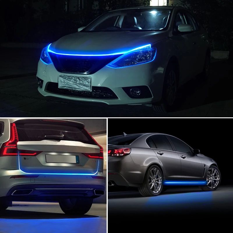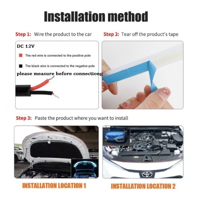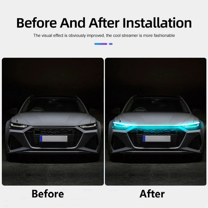 Easy to Install---This car LED strip light is easy to install, no need to remove the headlight, strong sticker. It can be cut by DIY without damaging, so it can be install in car hood, front grille, car door, tailgate ect.