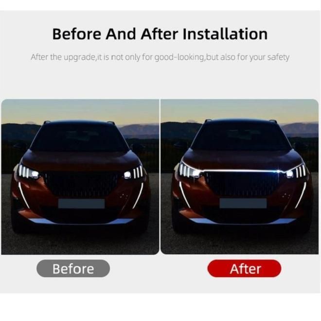 Easy to Install---This car LED strip light is easy to install, no need to remove the headlight, strong sticker. It can be cut by DIY without damaging, so it can be install in car hood, front grille, car door, tailgate ect.
