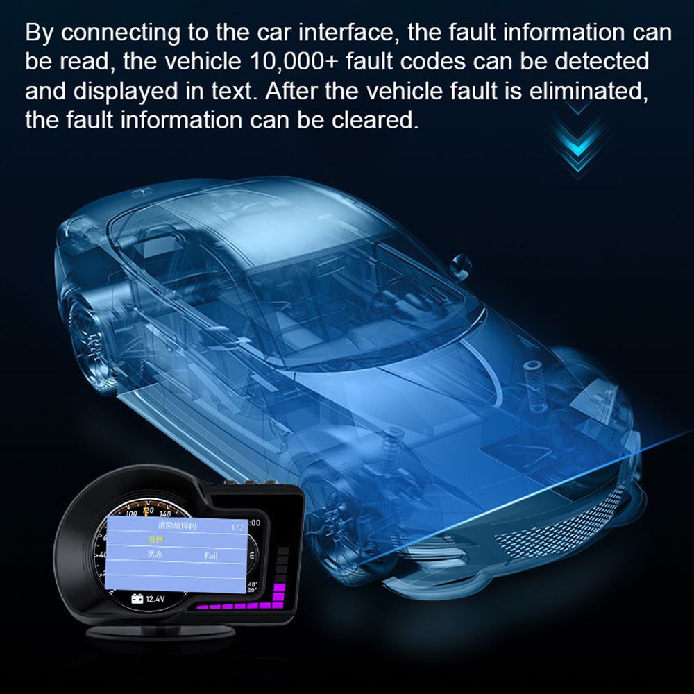 By connecting to the car interface, the fault information can be read, the vehicle 10,000+ fault codes can be detected and displayed in text. After the vehicle fault is eliminated, the fault information can be cleared.