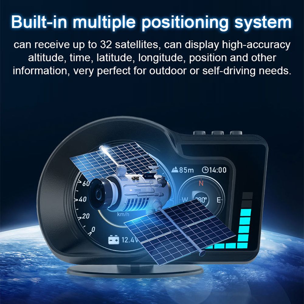 Built-in multiple positioning system, can receive up to 32 satellites, can display high-accuracy altitude, time, latitude, longitude, position and other information, very perfect for outdoor or self-driving needs.