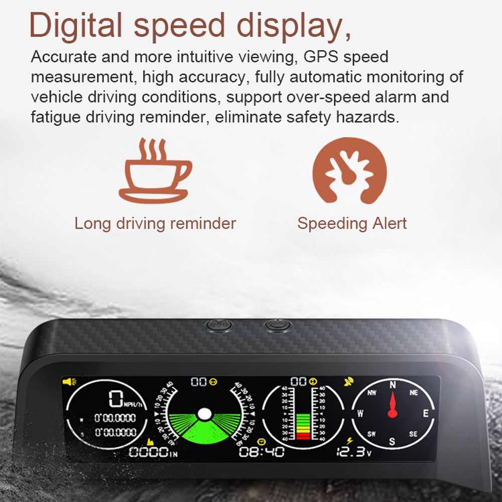 Safety Driving: Digital speed display, accurate and more intuitive viewing, GPS speed measurement, high accuracy, fully automatic monitoring of vehicle driving conditions, support over-speed alarm and fatigue driving reminder, eliminate safety hazards.