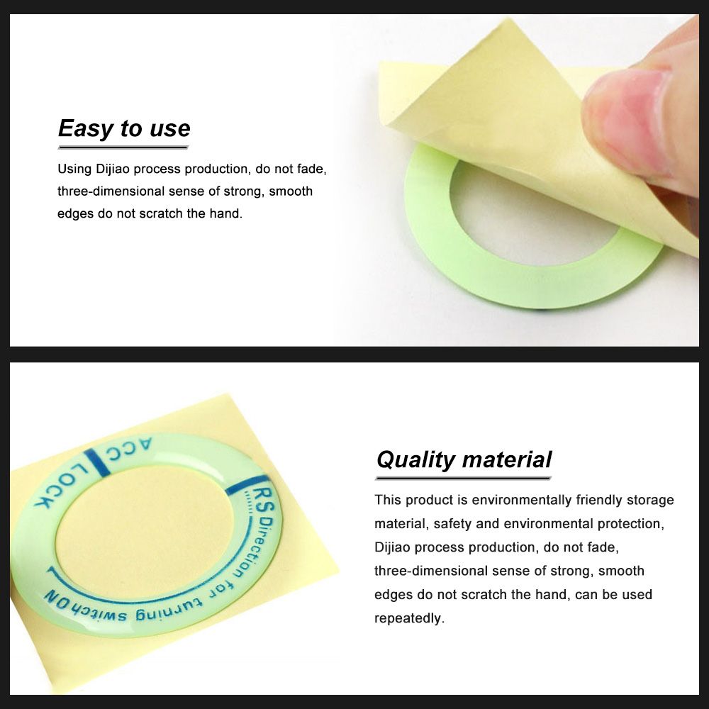 Key ring sticker will light in the dark for 8 hours after absorbing lights or sunshine for 15 minutes.