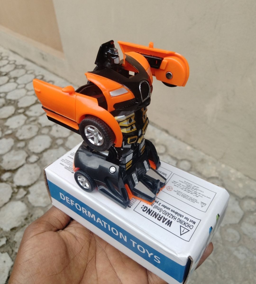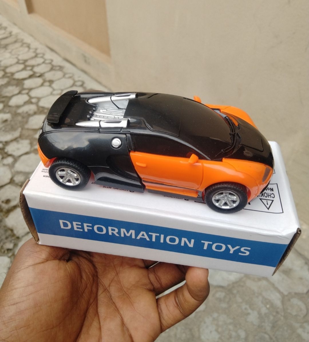 When it is bumped or come accorss the other car, it will be transform as a robot car. Play with 2 cars is much more fun