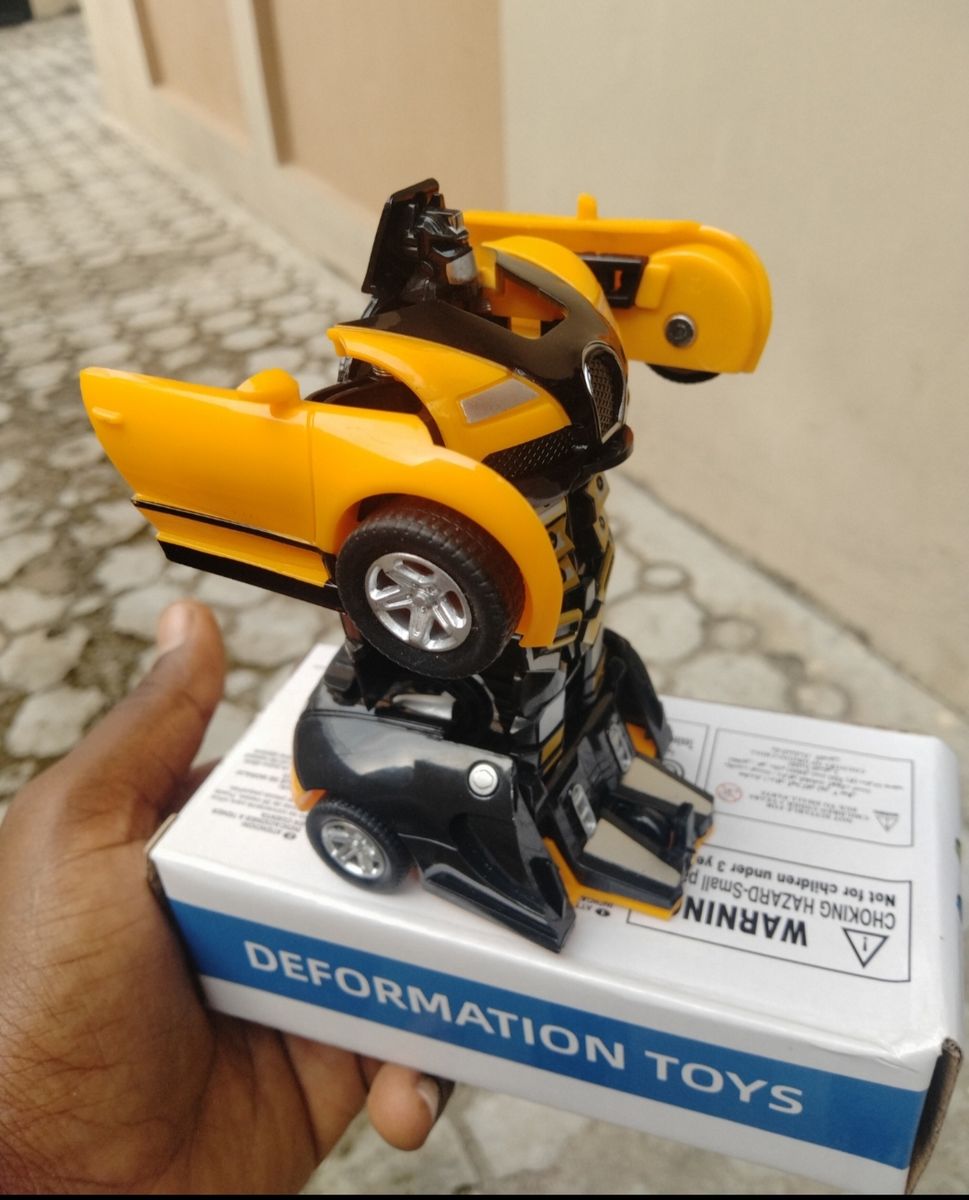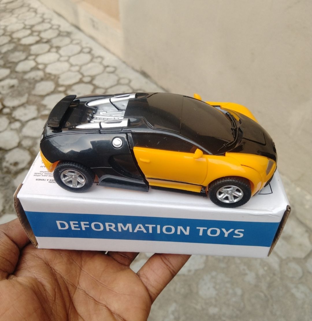 When it is bumped or come accorss the other car, it will be transform as a robot car. Play with 2 cars is much more fun