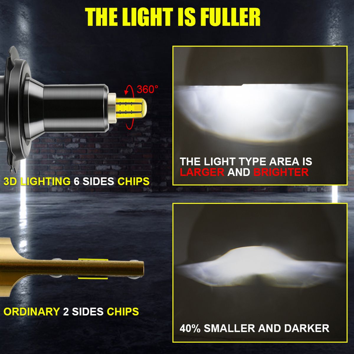 Unique Design:The head of the headlamps adopts exclusive technology, with 6 LED chip structure, without shadowed areas or dead angle or internal angle , with wider and further driving vision, make your nighttime driving safer.