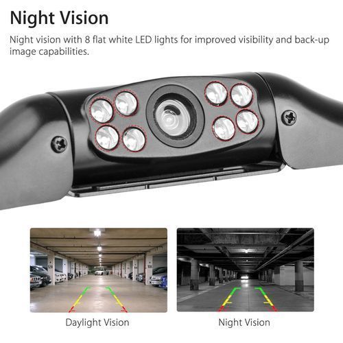 With 8 Bright LEDs, night vision reversing camera provides you realistic images for night time or dark space backing up.