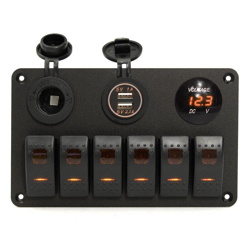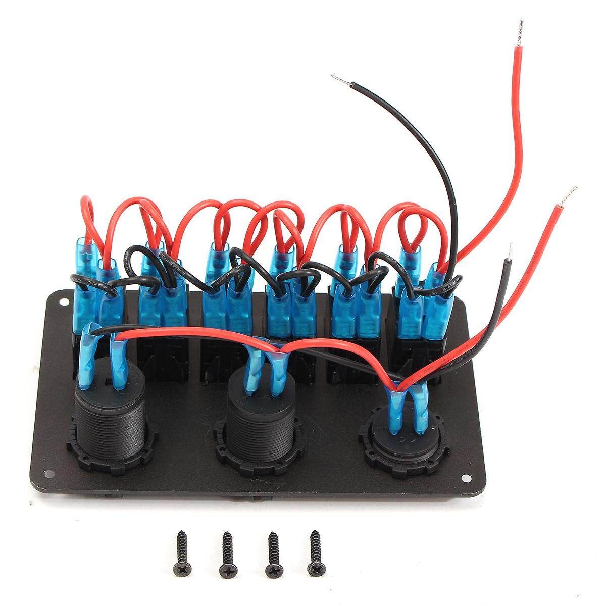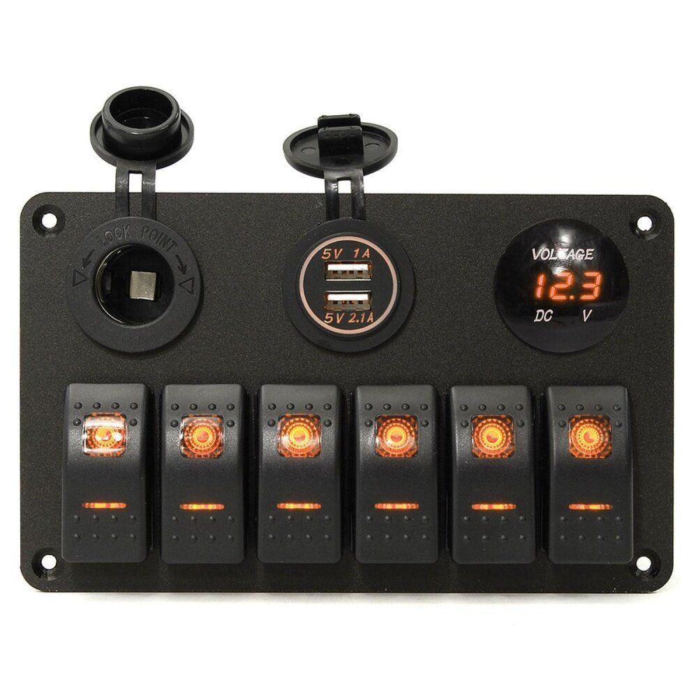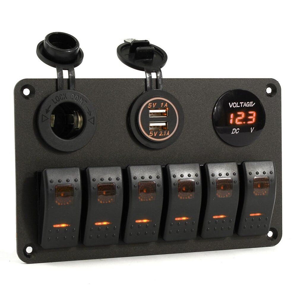 1x DC12-24V Car Charger Dual USB Port + LED Digital Display Voltmeter + Switch 4x Screws