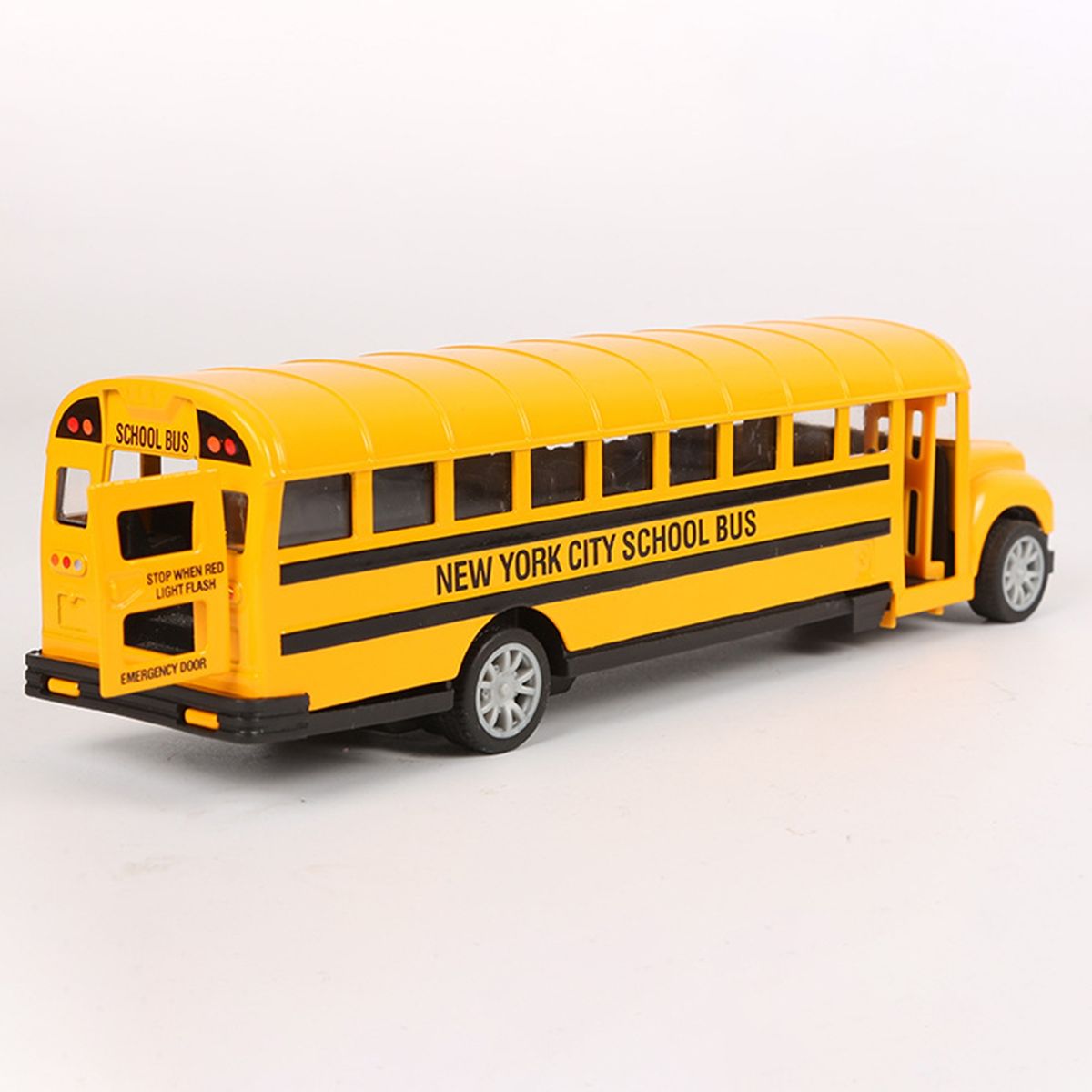 Just slightly press and pull back the school bus, it will move forward. Your lovely kids will love the yellow school bus toy very much. Moreover, the door of the bus can open. It will surely add more fun while playing.