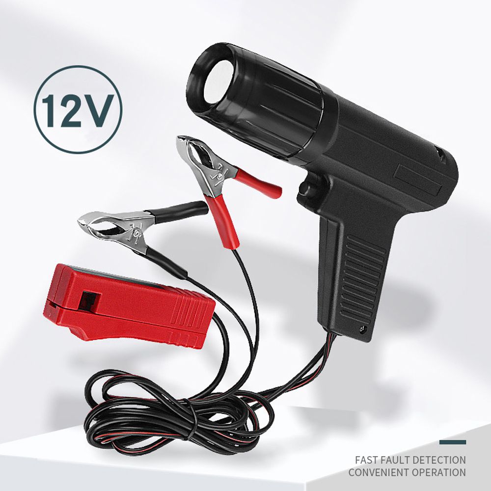 This automotive ignition timing light can be used to detect timing changes due to faulty ignition systems or to reset the timing when a vehicle component is changed. It can quickly detect ignition timing on the engine flywheel or pulley, the car's stall-suppression control, and the vacuum advance angle control. 12.0V operating voltage, quick detection, easy operation, and is universal for two-stroke and four-stroke gasoline engine automobiles.