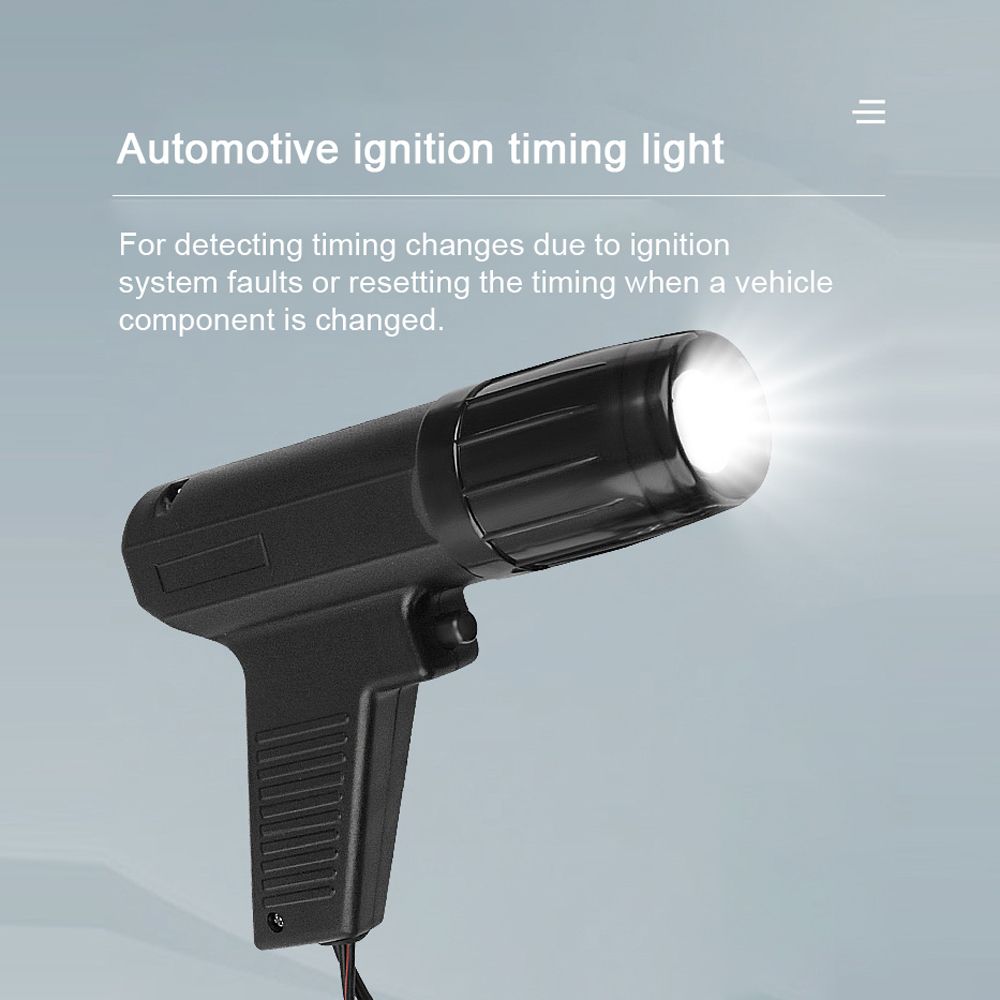 Automotive ignition timing light for detecting timing changes due to ignition system faults or resetting the timing when a vehicle component is changed.