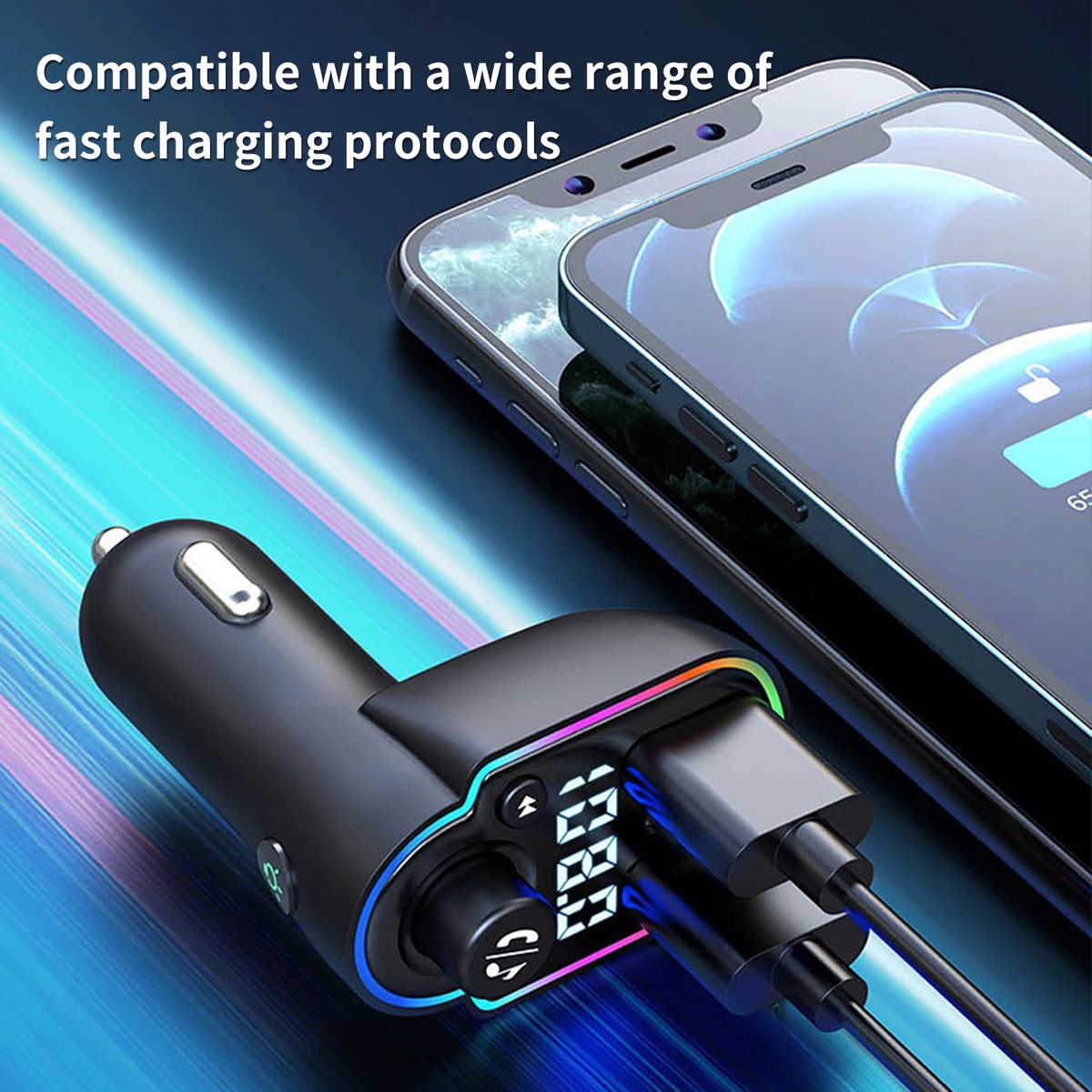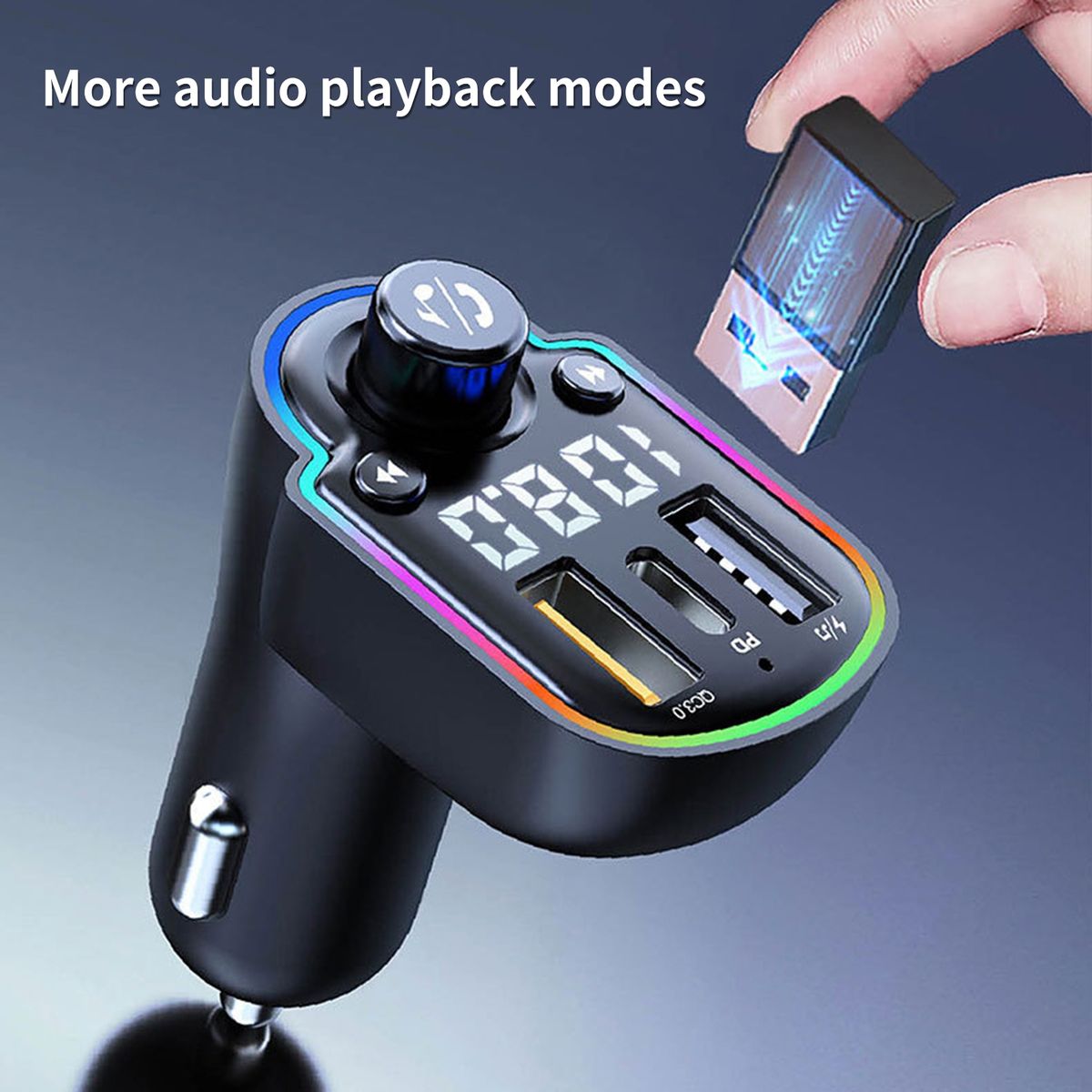 Using QC3.0 technology, this car MP3 supports fast charging. With the adoption of Bluetooth-compatible5.0 chip, this car MP3 can bring you lossless and noise-reduction sound effect.