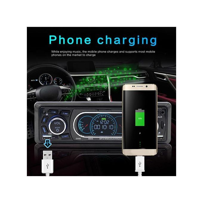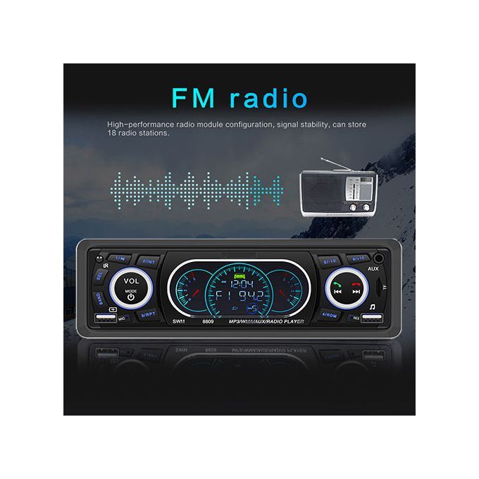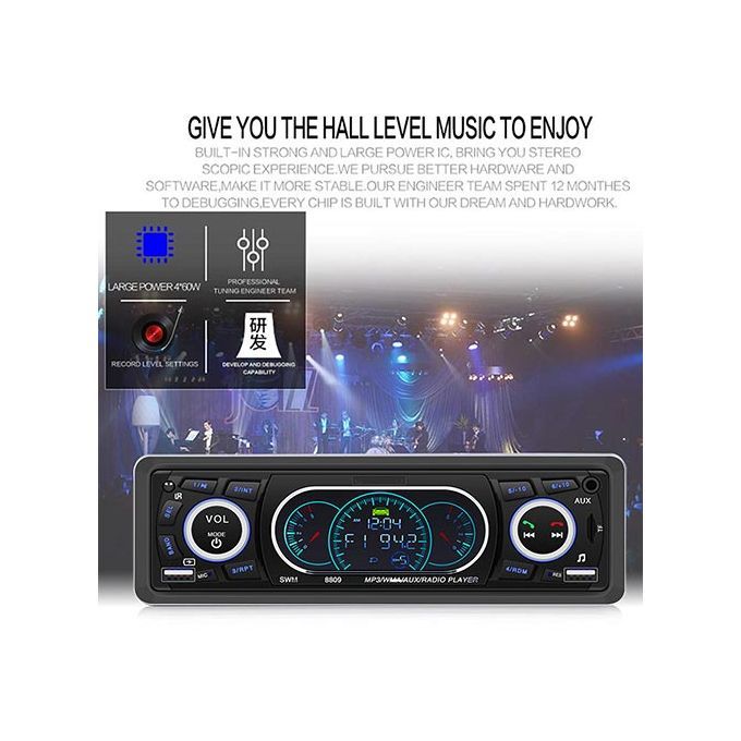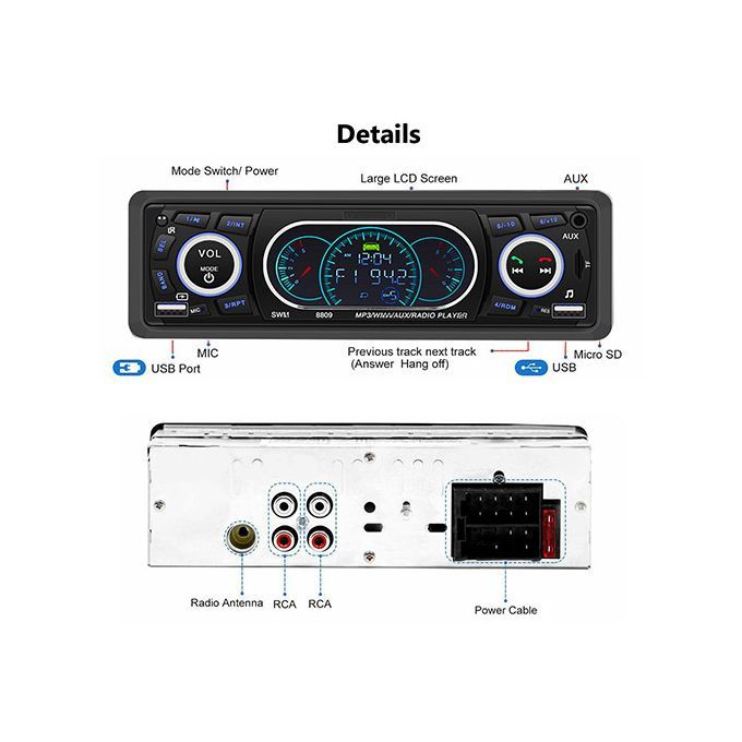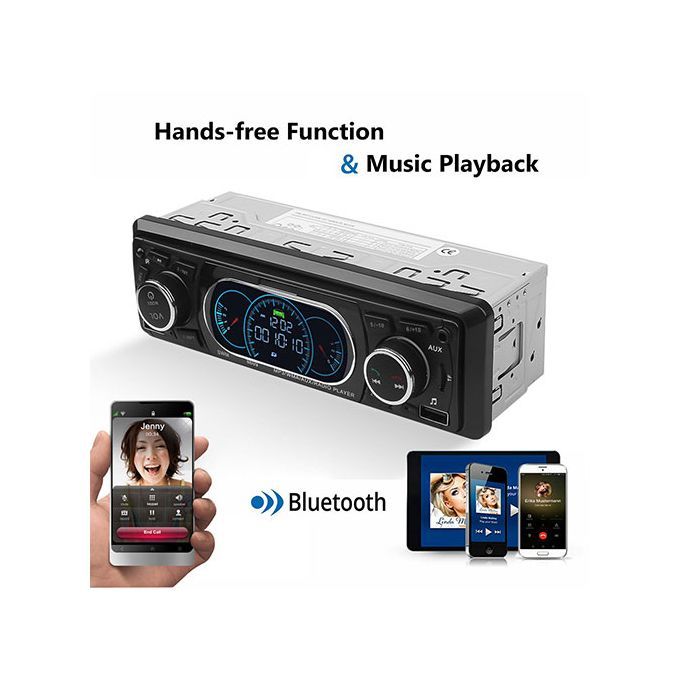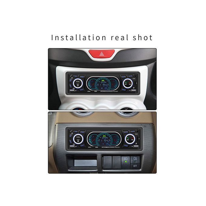 Support external Aux (3.5mm plug) to insert audio, such as muffler, MP3.MP5 and other mobile phone audio, etc., input Aux audio through the front end, and output the high sound of the car. , Built-in Bluetooth + microphone, support free calls.1 DIN version, LCD display, suitable for most vehicle types.Support high-capacity TF card and U disk (up to 32 GB) music playback.Support MP3/WMA fidelity lossless audio format.Support auxiliary audio input, mobile phone/MP3/MP4/MP5/navigation audio playback through the machine in the car.A built-in USB charging port can charge various mobile devices such as smart phones, tablet computers, map 3, mpa 4 and so on.Support infrared remote control. (Including battery)Support FM radio, 87.50MHz-107.9MHz, automatic memory function of 18 radio stations.Support file playback function, can be divided into popular songs, classical songs, children's songs and other favorite songs, you can easily play by creating different folders in the memory card.Support the last memory function. (Radio and SD/MMC and USB)Multiple EQ live options: jazz, rock, pop, classical, etc.4 channels of high power output (4*60W speakers).
