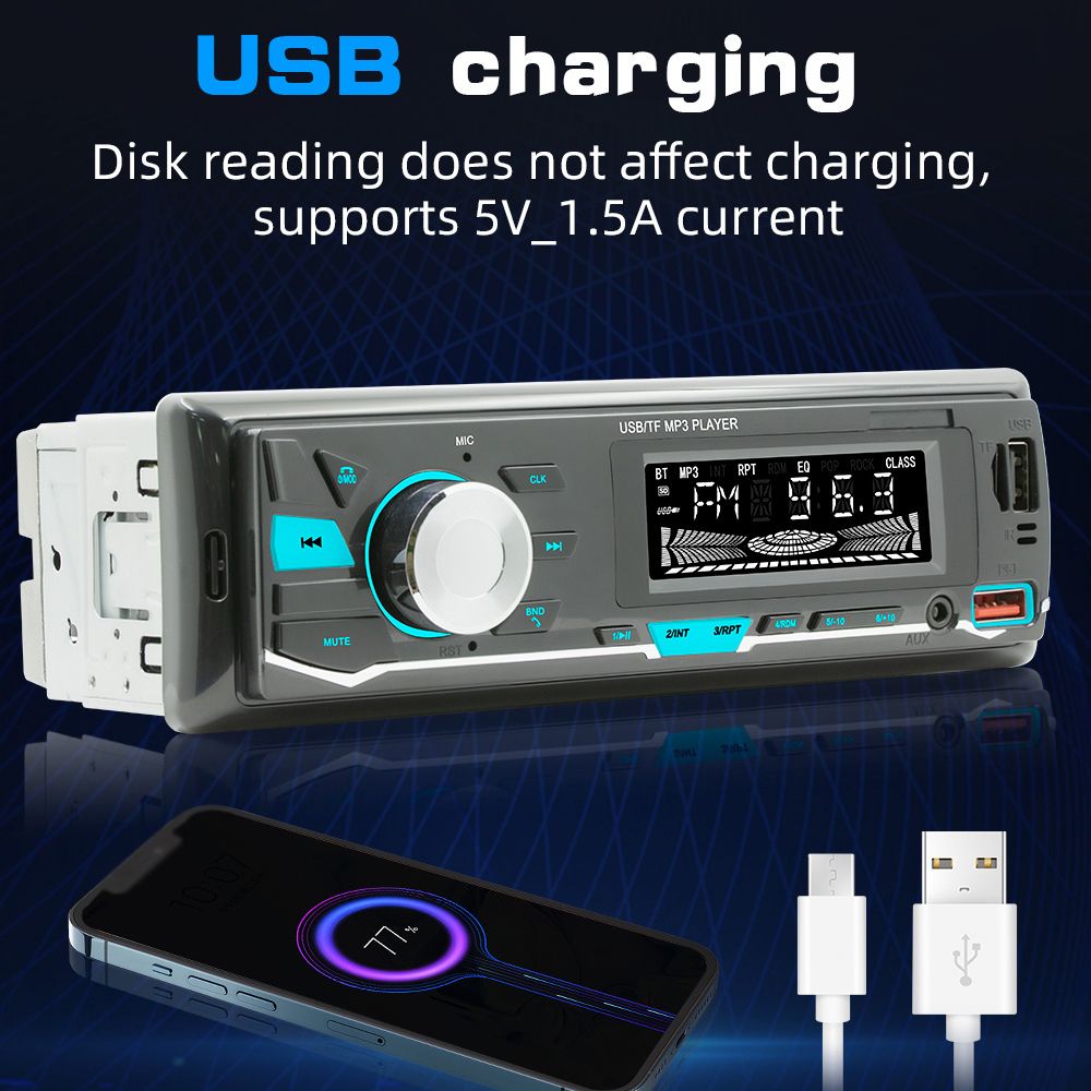 Car MP3 player, support U-disk/TF card/AUX/BT playback, shocking stereo sound, subwoofer audio output, gives you a nice music experience.