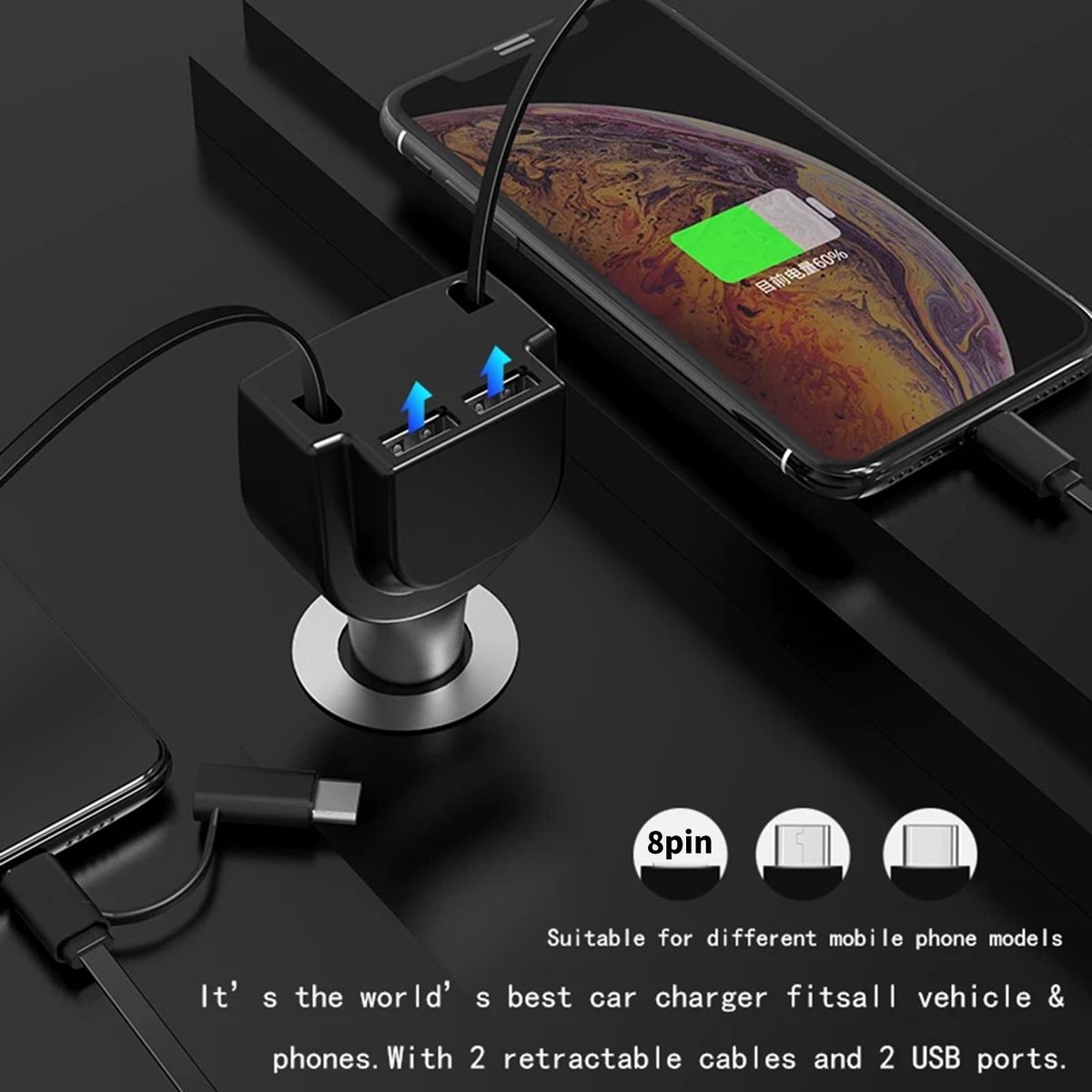 The charger is universally suitable for 12-24V cars.
