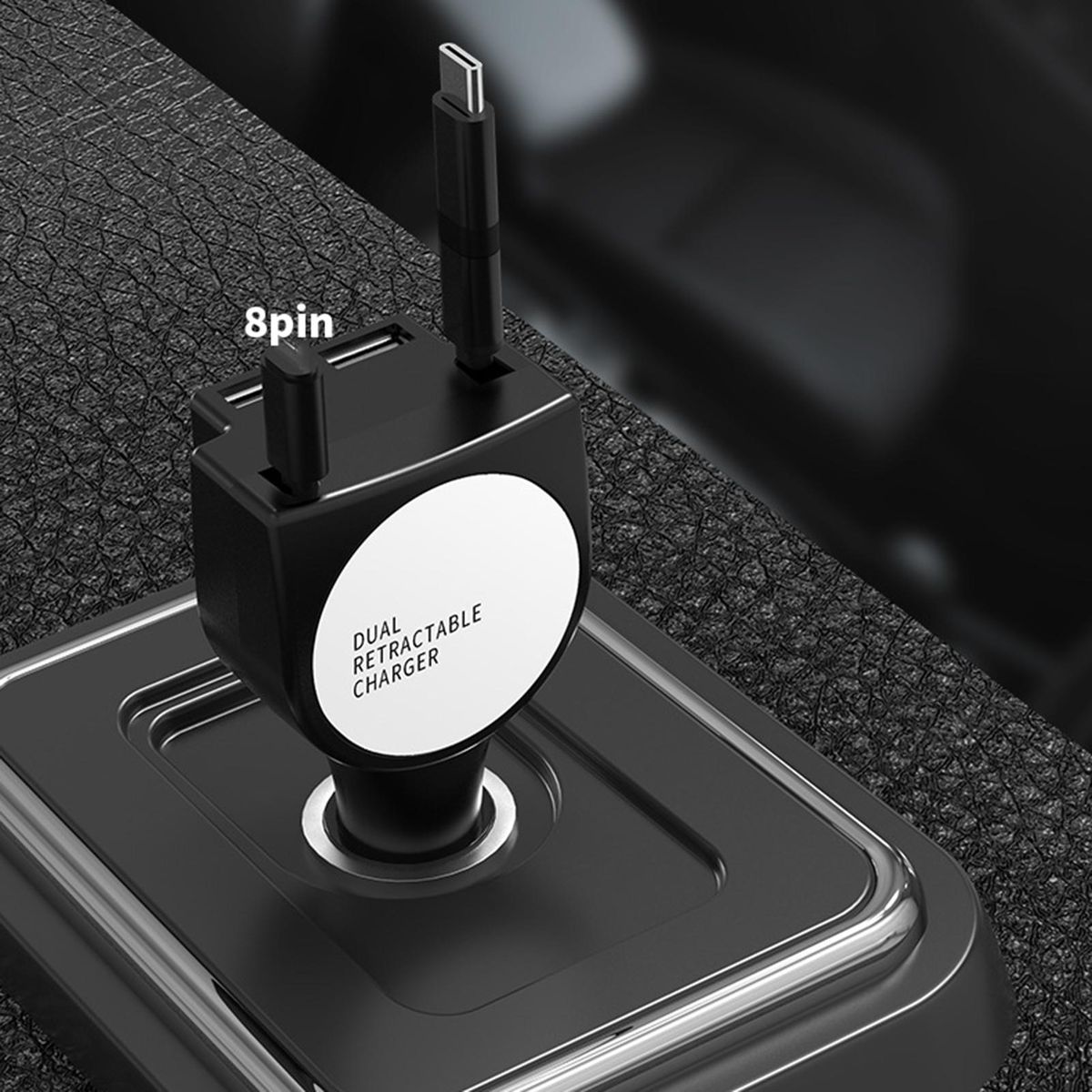 Thanks to the telescopic cable design of the center console car charger, the gear can be fixed by gently pulling down one end of the port when in use, and can be put away when not in use, which can keep the car tidy and very convenient.