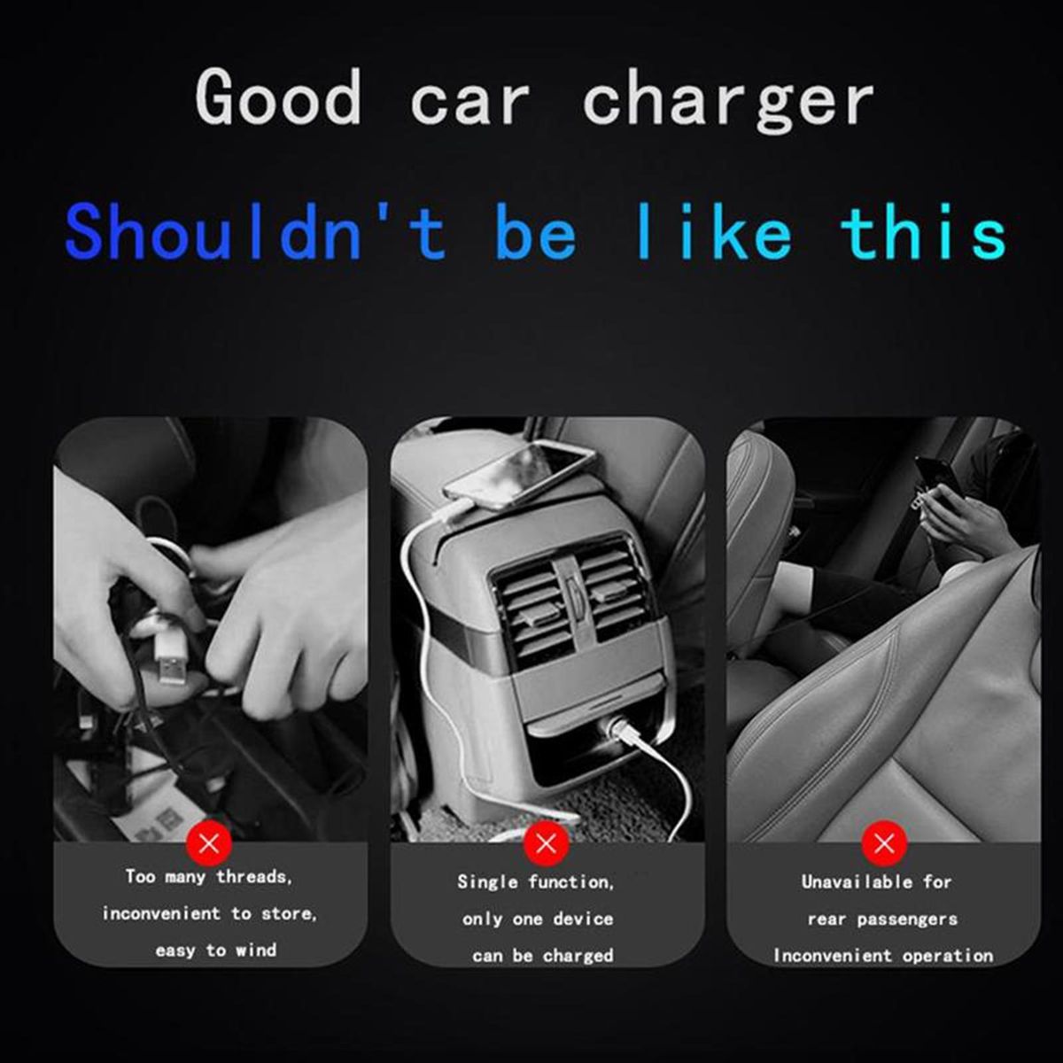 Thanks to the telescopic cable design of the center console car charger, the gear can be fixed by gently pulling down one end of the port when in use, and can be put away when not in use, which can keep the car tidy and very convenient.