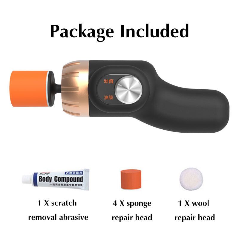 1 x Scratch repair machine 1 x Scratch removal 4 x Sponge repair head 1 x Wool repair head