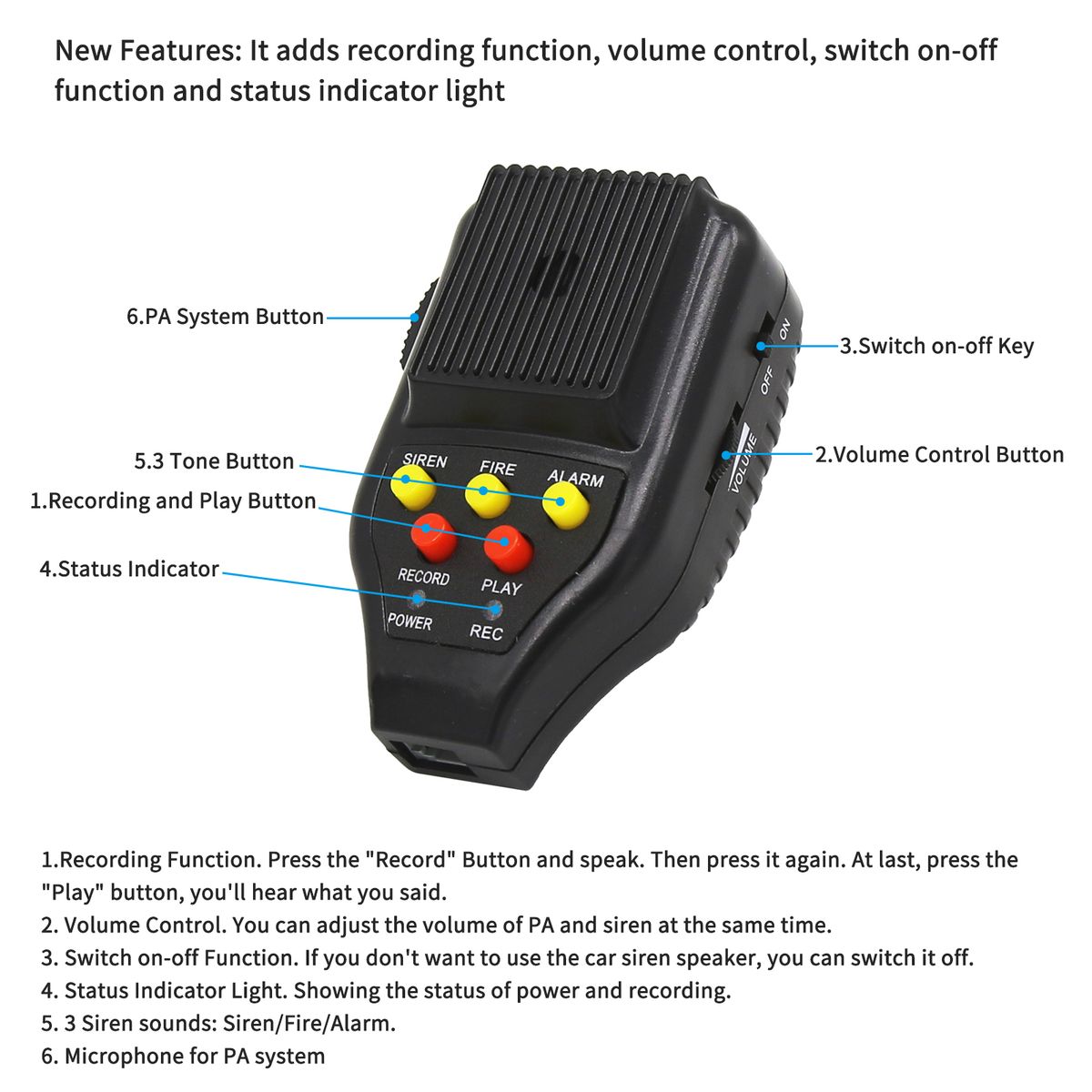 PA System: This car siren speaker is built in public-address system. You can talk to other people with this mic in your car.