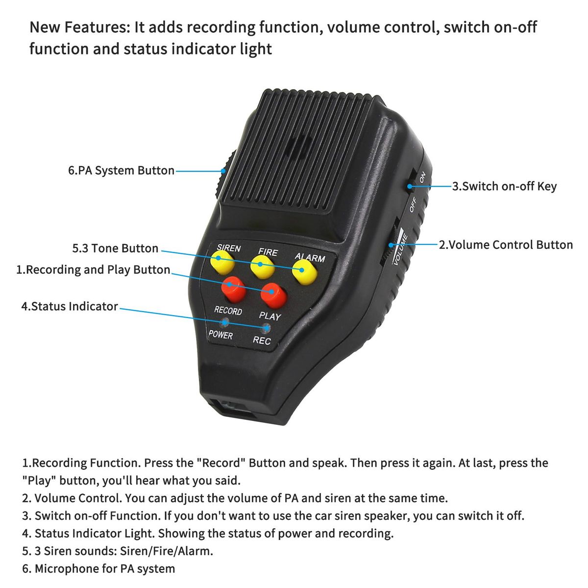 Buy Car Recording Siren Speaker, 12V 100W 3 Tones Car Siren Horn Speaker and Mic PA Speaker System with Recording Function, Volume Control, Switch on-Off Function, Status Indicator Light in Nigeria
