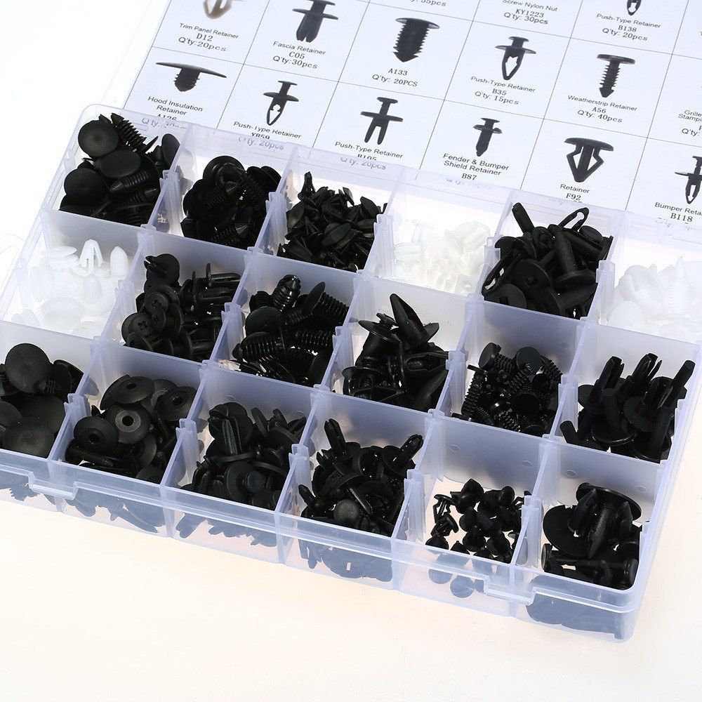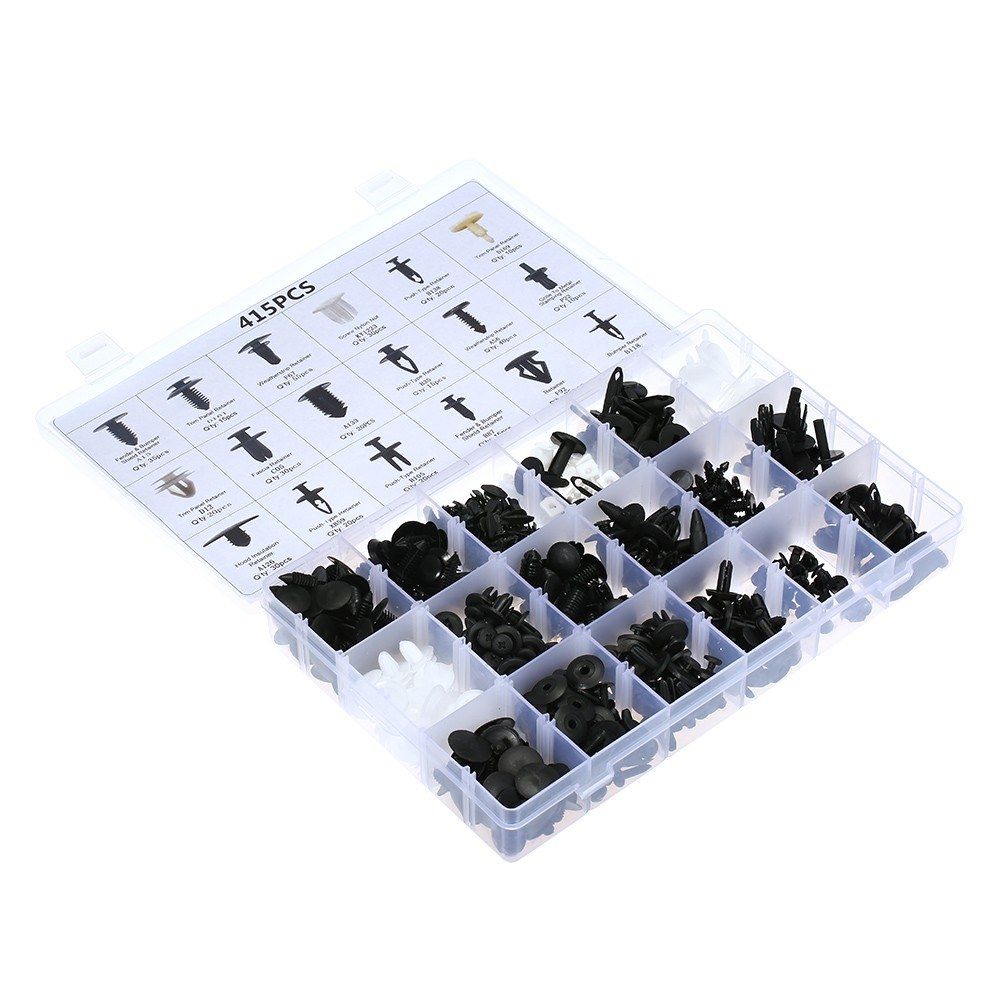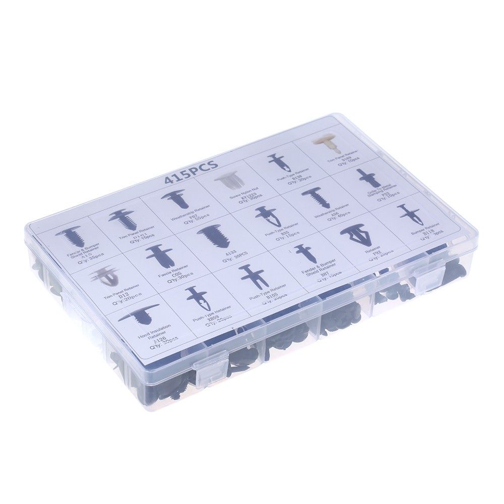Made of very durable nylon that will not break instantly. Great for most popular applications such as: door trim, fender, hood and bumper, radiator shield yoke, side skirt, grille, etc. Covering steel shaft amp; plastic handle remove tool 18 different sizes for exact replacement of old, worn or broken retainers.