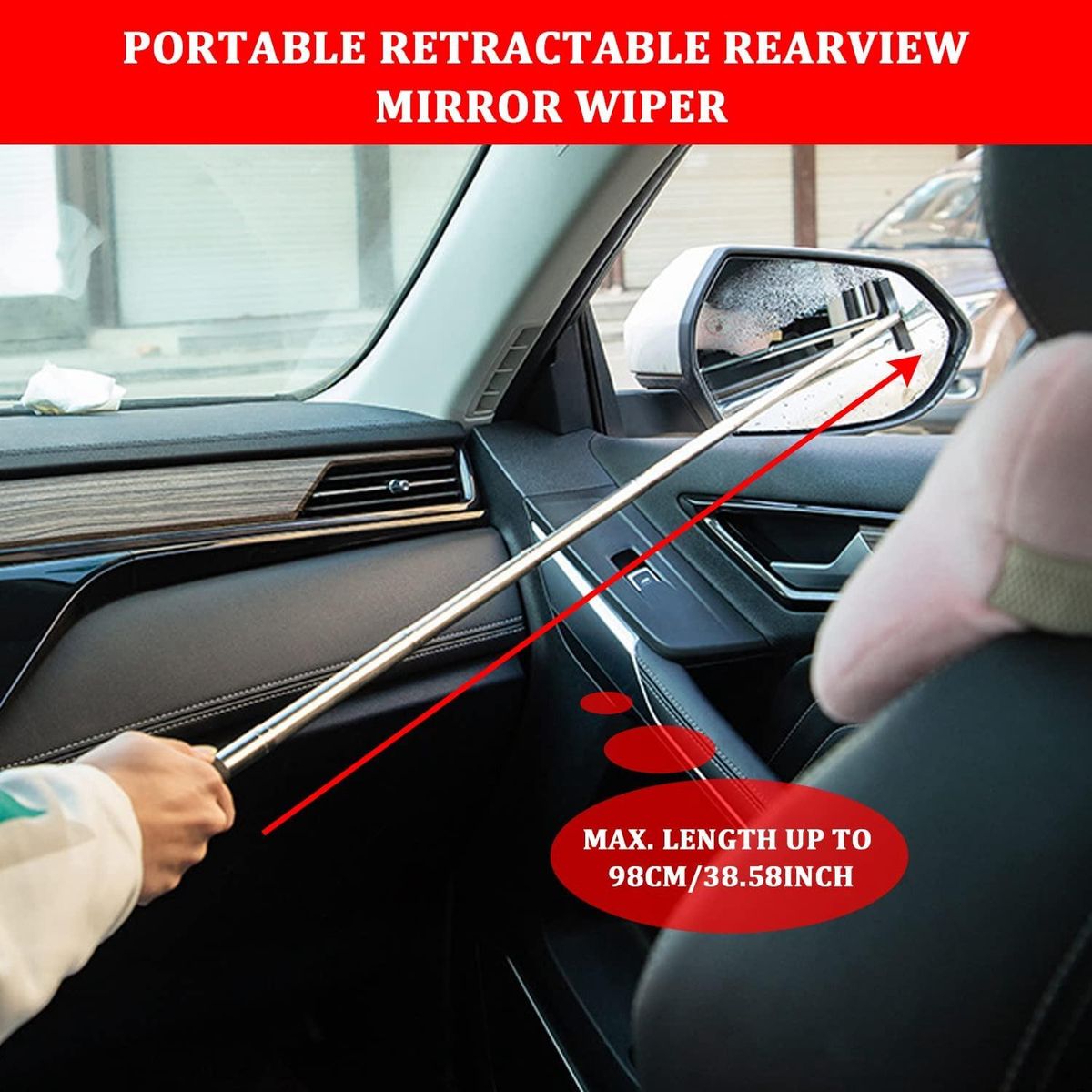 [UNIQUE DESIGN]Retractable design,Car Rear View Door Mirror Brush Up to 38 In/98 cm.Even when you are in the driver's seat, you can easily scrape the water off the rear-view mirror on the other side.