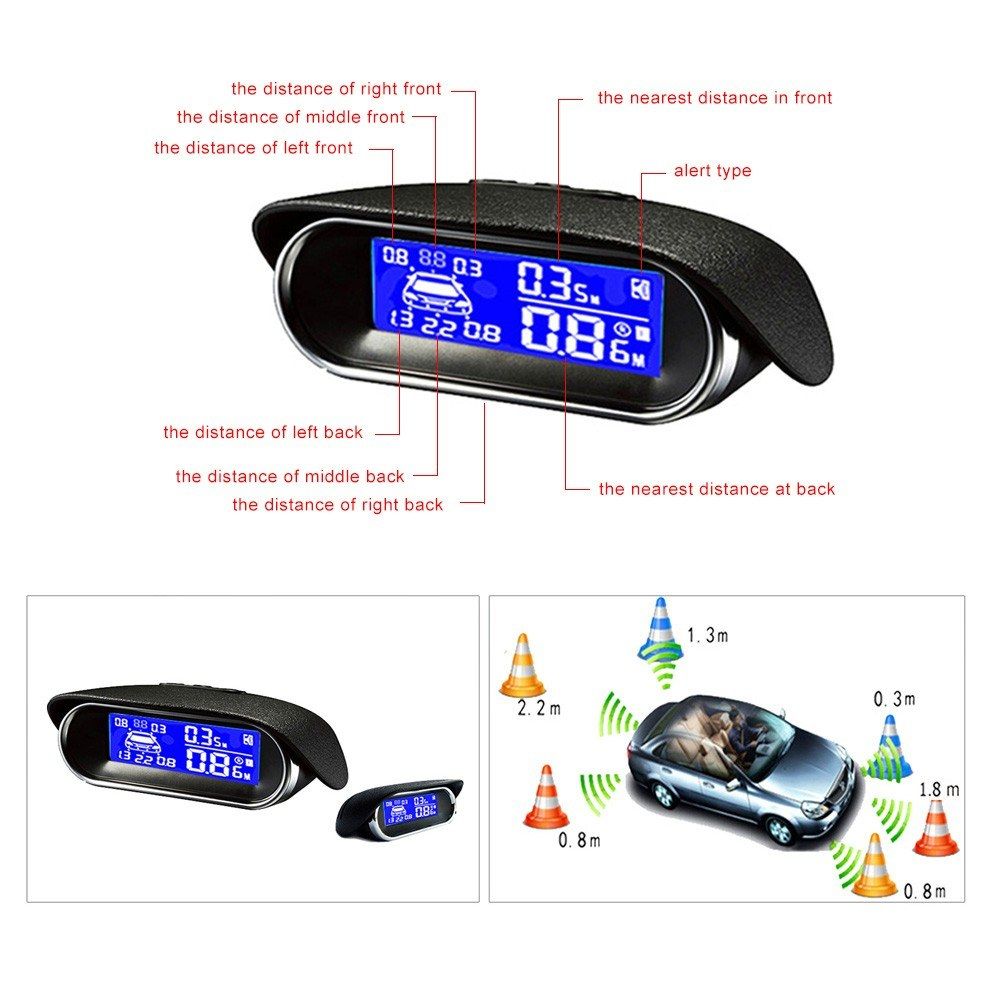 7.Full digital display reversing radar with 3 levels for volume control.