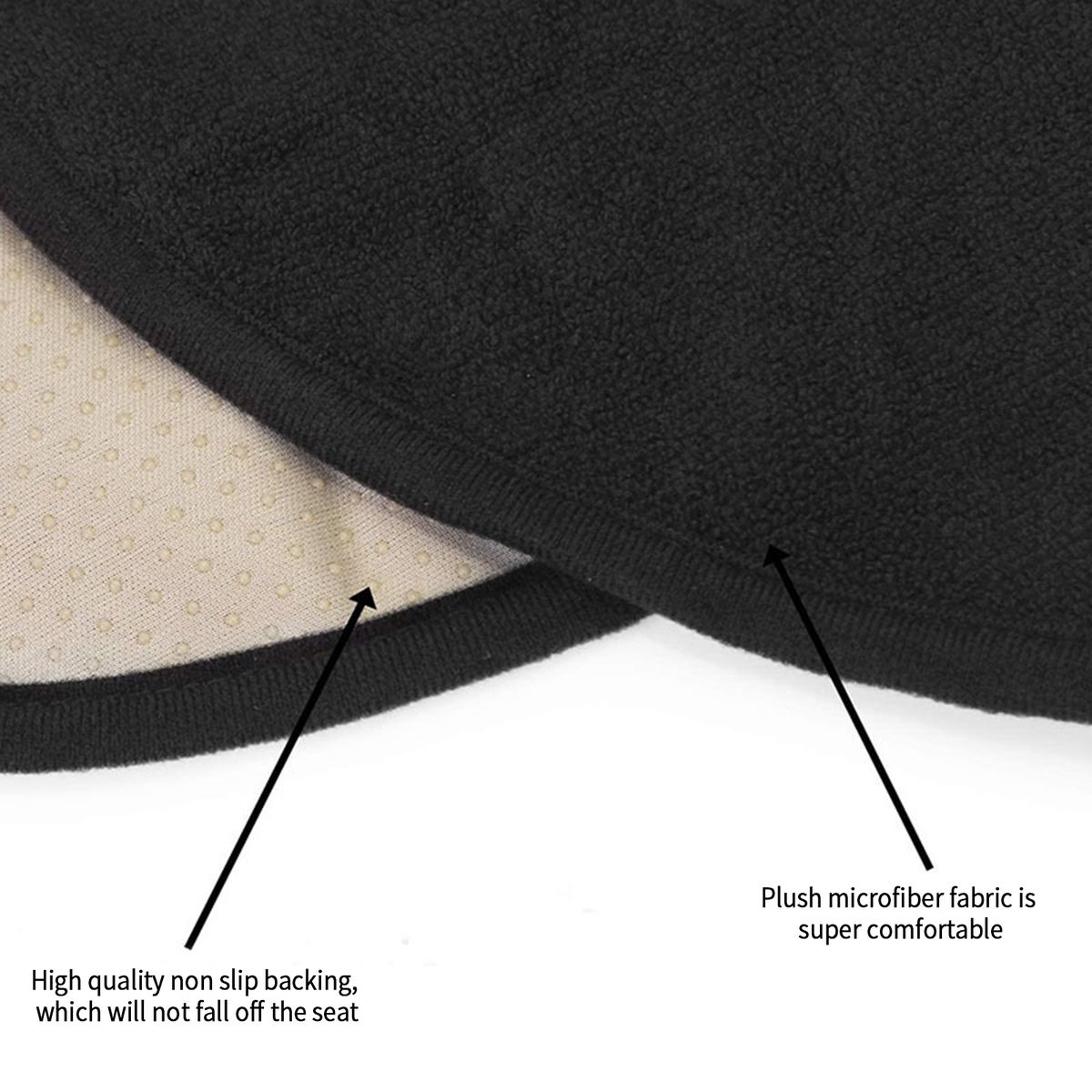 High quality non slip backing, which will not fall off the seat. Plush microfiber fabric is super comfortable.
