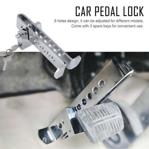 Our car anti-theft device offers unbeatable protection against theft, pry, saw, hammer, and Freon attacks. Made from high-quality materials, it's built to last and features a stylish and functional design. This universal lock is adjustable and fits any vehicle from cars to golf carts, making it a perfect solution for both automatic and manual transmission vehicles. It doubles as a safety hammer, providing additional peace of mind in case of an emergency. With just a few seconds, you can lock your car's steering wheel and clutch with its key, ensuring your vehicle is secured at all times. Each set includes 1 lock unit, 3 keys, and superior customer service to ensure complete satisfaction with your purchase. Get your car anti-theft device today and rest easy knowing your vehicle is safe and secure.