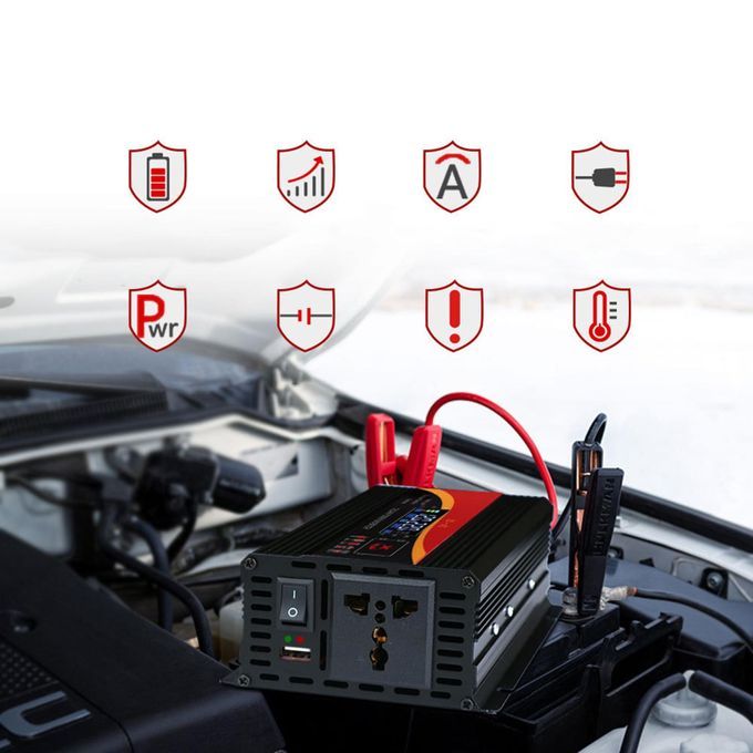 LCD Display: with a high-definition LCD color display screen for easy viewing of voltage conditions. More than 95% conversion efficiency ensures your equipment and car safety.