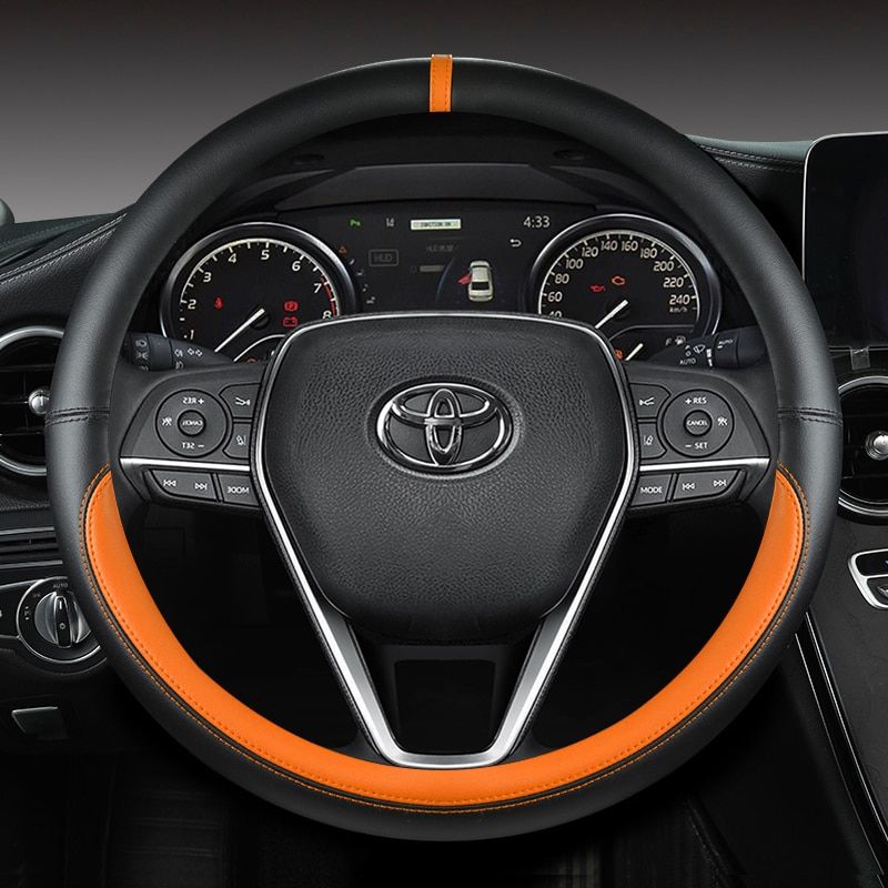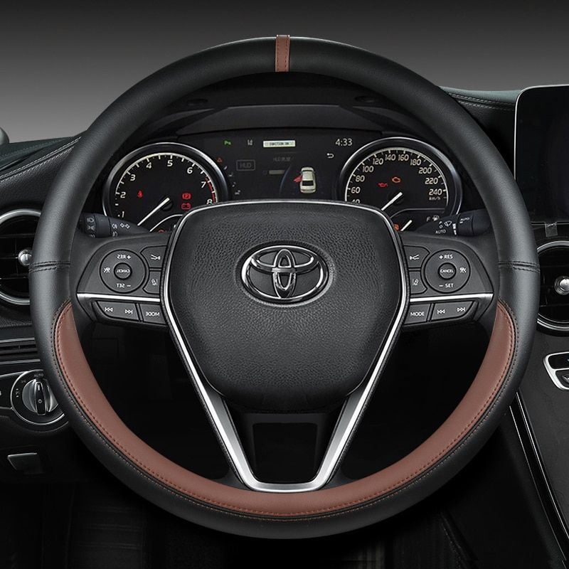 1X Car Steering Wheel Cover 38cm Leather For Toyota Corolla Avensis Yaris Rav4 Hilux Auris 2015 Camry CH-R 2021 Auto Accessories
