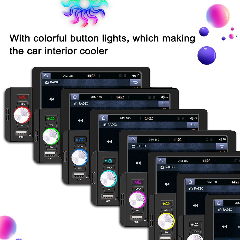 Features:【High-Clear Display】 5 inch car stereo player with high clear capacitive touchscreen, sensitive response, high resolution and easy to operate. With colorful button lights, which making the car interior cooler.