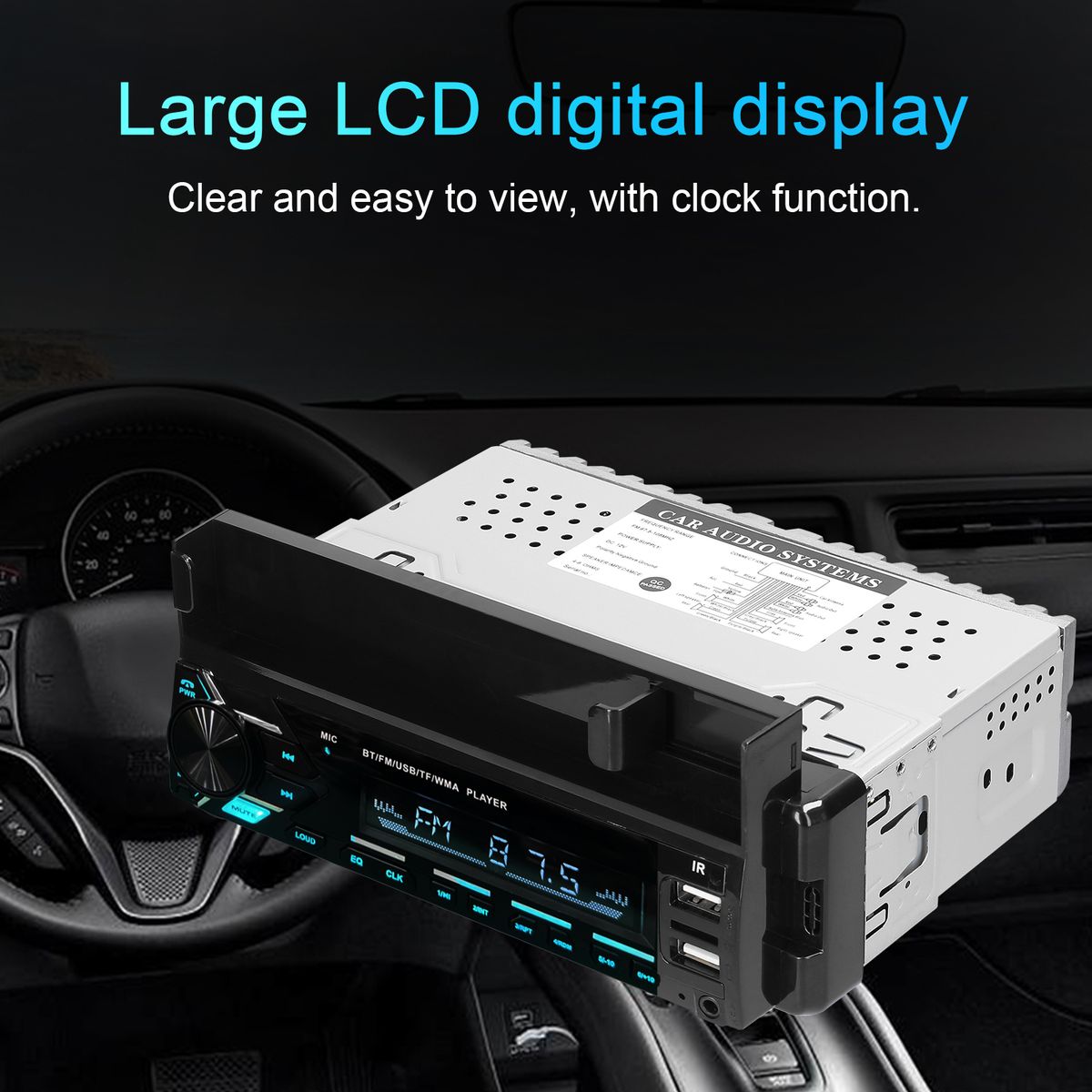 Large LCD digital display, clear and easy to view, with clock function. Dual USB ports, not only support reading U disk, but also can quick charge your phone.