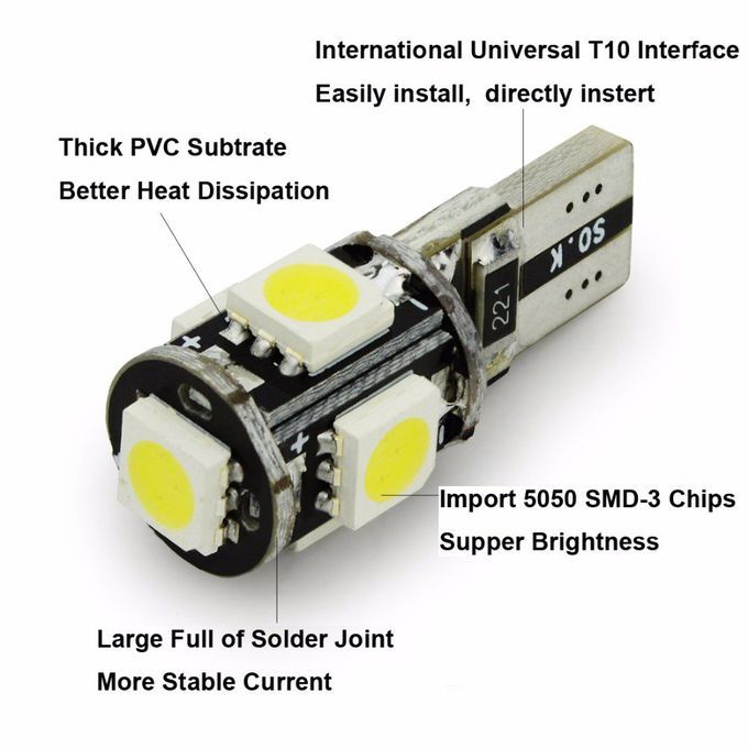 Car T10 Decoding Light With Heat Dissipation Aluminum 5Smd 5050 Wide Silver