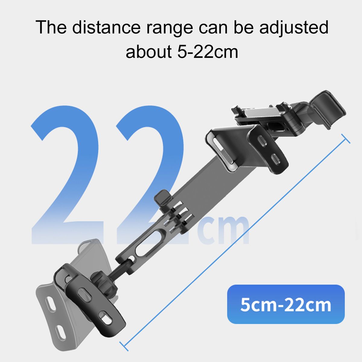 Adjustable: This car tablet holder can be rotated 360 degrees and with adjustable stretch viewing distance. Built-in universal wheel, can be adjusted at any angle, and supports horizontal and vertical viewing. The distance range can be adjusted about 5-22cm.