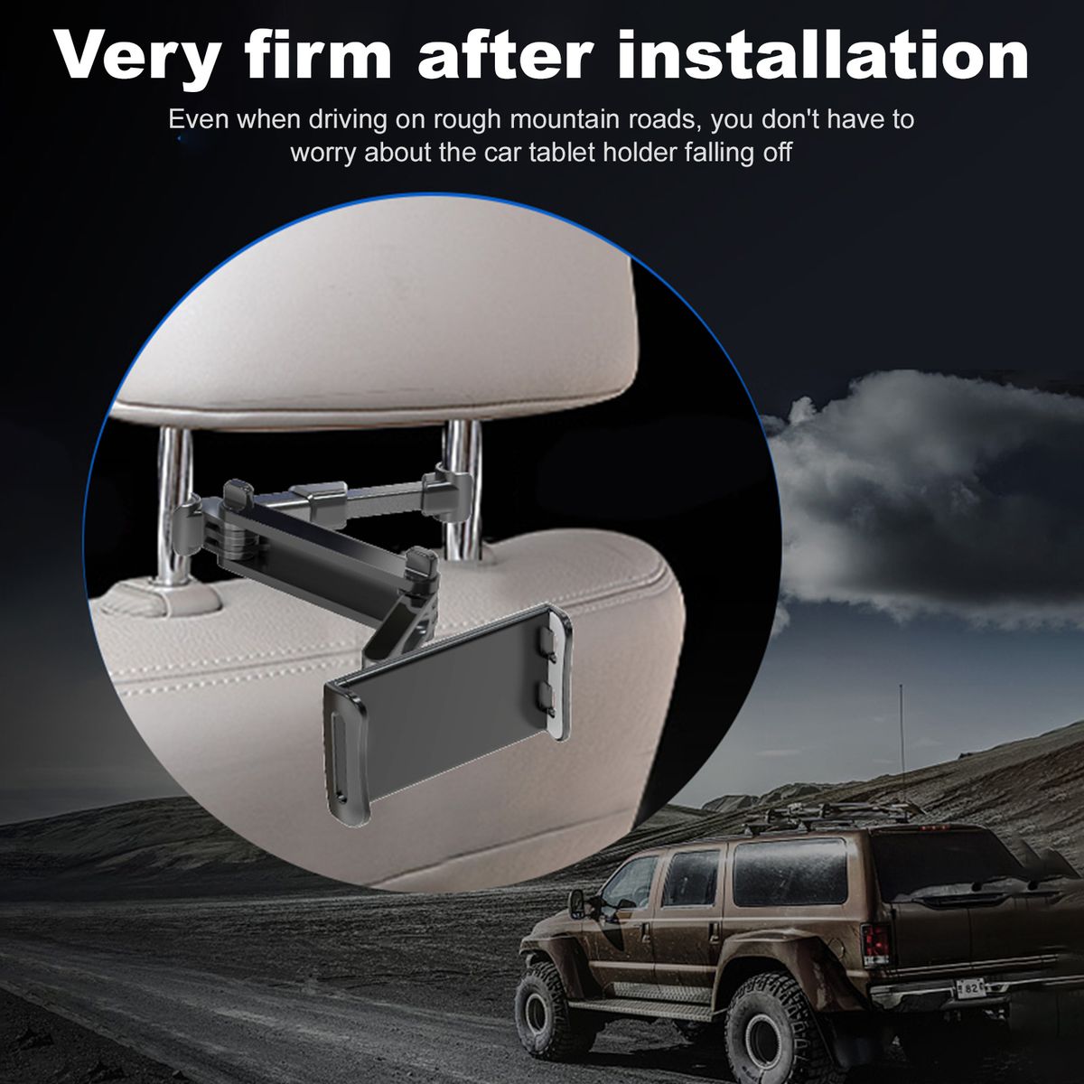 More Stable: Bracket clamp arm, silicone care and protect your phone/tablet from sliding. Headrest buckle, shock-absorbing, non-slip and more stable. Even when driving on rough mountain roads, you don't have to worry about the car tablet holder falling off.