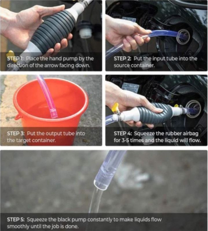 Using the suction pump, you can make small oil changes, pour gasoline into the tank, or refill the tank.Gasoline, petroleum water, etc. Widely used in common liquids such asEasy to use, just put the oil inlet pipe under the oil tank, insert the oil discharge pipe into the prepared oil tank, press the rubber ball 3-5 times, the liquid will flow out automatically.