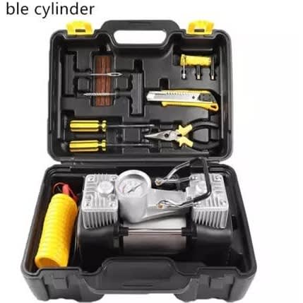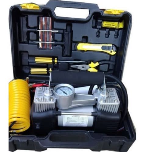 Portable electric Tyre inflator with a punch down cutter set of Tyre repair. Designed to save cost