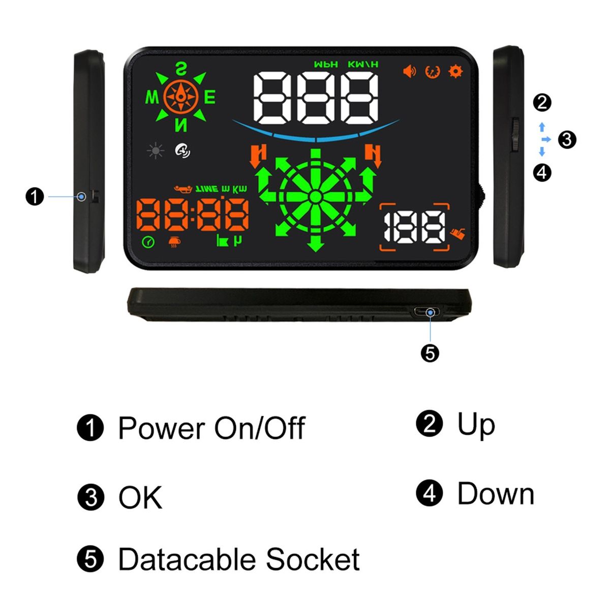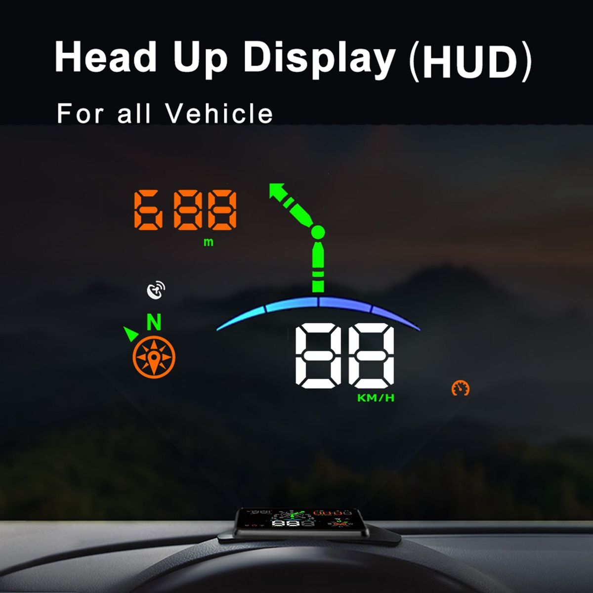 Multi Function: The Alarm icon Light sensor: HUD can automatically adjust the brightness according to the environment .Speed unit: KM/H, MPH .Multi-function zone: speed,mileage,driving direction.