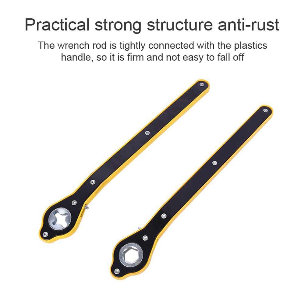 Practical, strong structure, anti-rust. The wrench rod is tightly connected with the plastics handle, so it is firm and not easy to fall off.