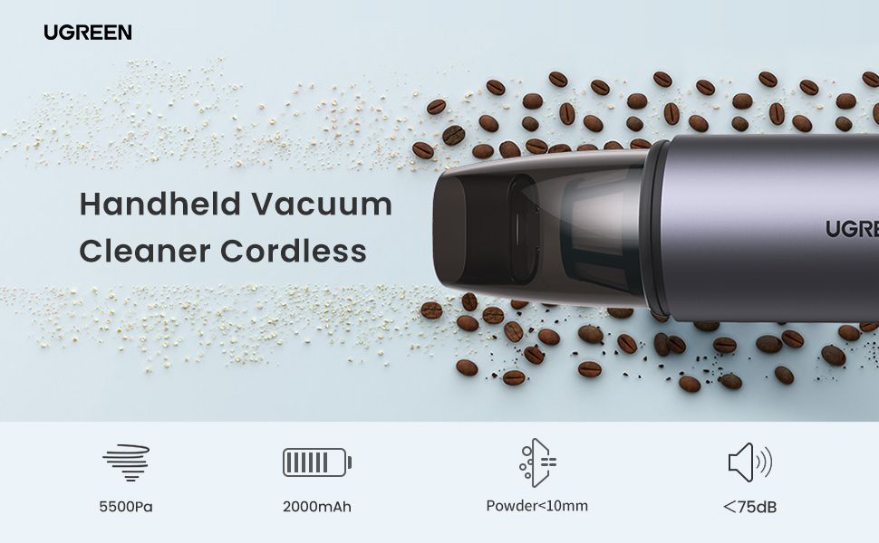 - Strong Suction The UGREEN portable vacuum cleaner has 85W high-power motor with a suction power of 5500Pa. It is widely used in the cleaning of dry environments such as offices, automobiles, and home wood floor tiles. It can effectively clean up paper and debris every day. This vacuum cleaner is also equipped with a large-capacity dust cup, which can facilitate deep cleaning of all corners of the house and car, giving you a clean and comfortable environment.