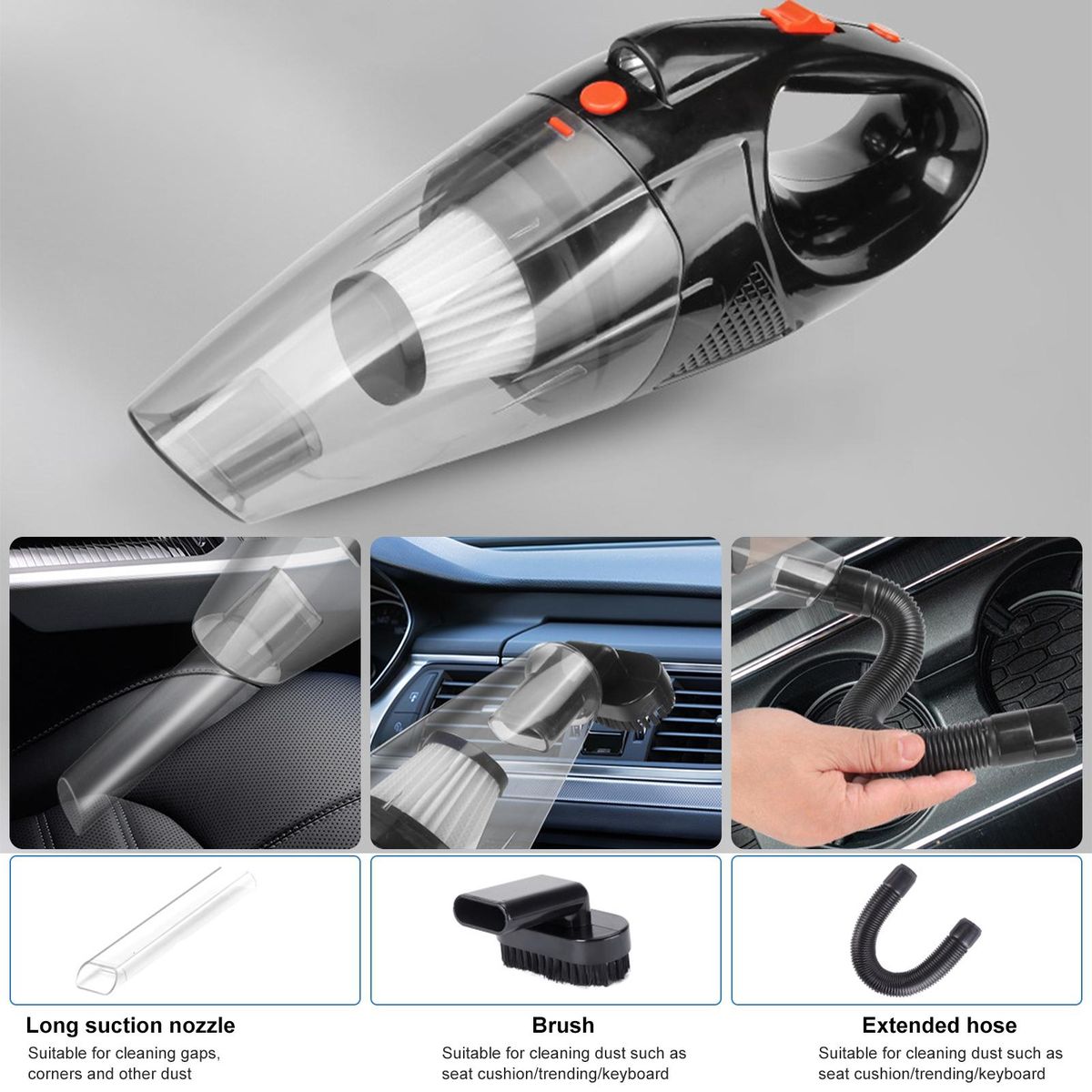 The car vacuum cleaner is characterized by strong suction power, multiple filtering and high-speed motor, which helps achieve deep and quick cleaning.