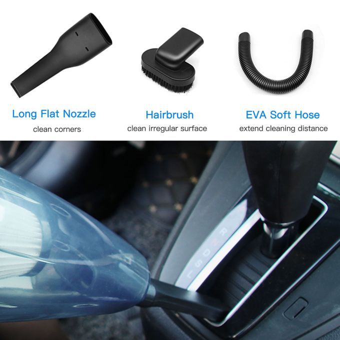 Strong suction, comes with a long flat suction nozzle, a hairbrush, a lengthened soft hose, a short suction nozzle, can clean car seats, corners, foot mats and other places.