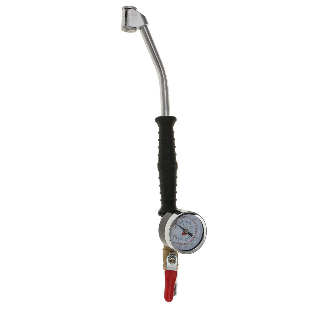 For use with an air compressor, this Tyre air pressure gauge has a valve switch to regulate the airPerfect for inflating the Tyre's of Cars, , motorcycles, and moreFits standard Tyre valvesMaximum pressure 220PSI, 16 BarDurable Rubber handle