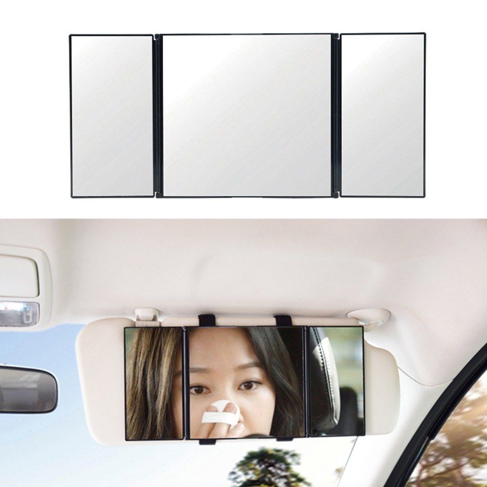 Tri-fold mirror provides two different visual angle during your make up in the car, show more details for every making up action.