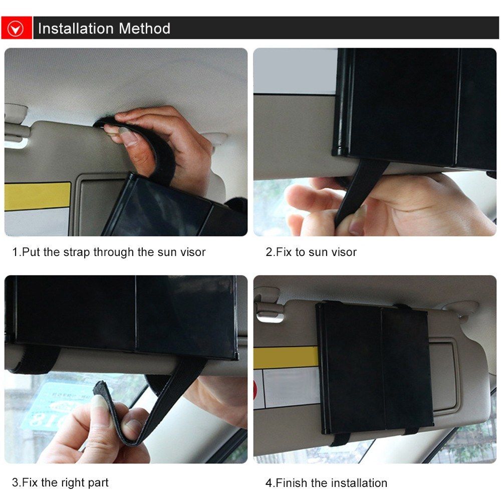 Fits for most cars with adjustable hook loop tape, can mount on most kinds of sun visor easily, won\'t damage your sun visor.