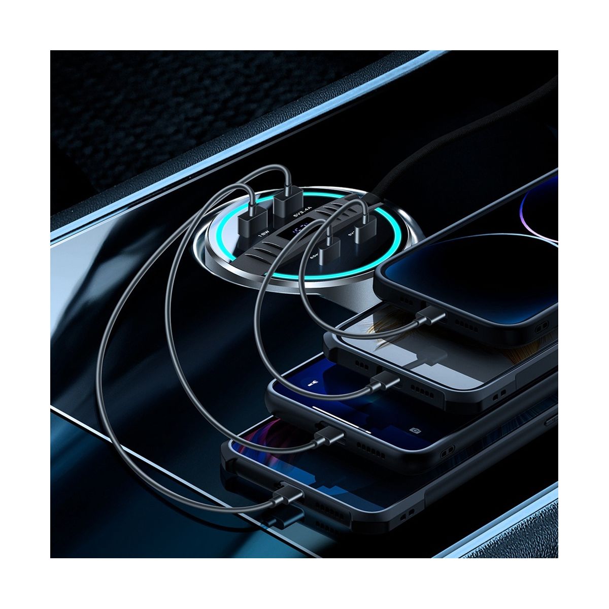 Installed in the cup holder, convenient for charging and plugging