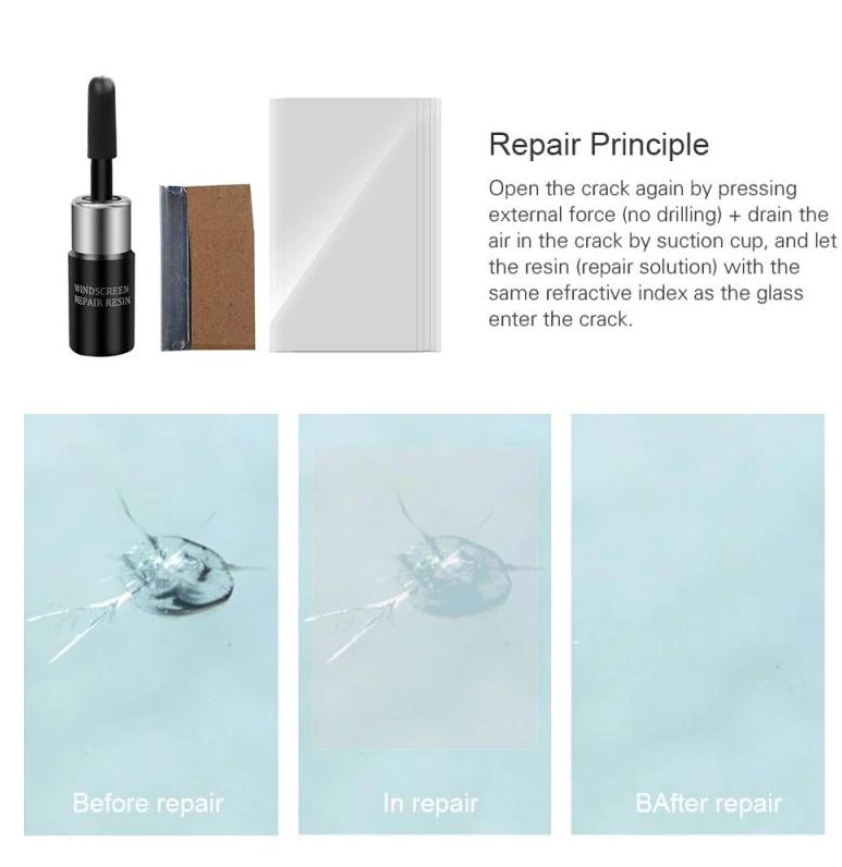 Description:Characteristics:* Car Windshield Window Glass Repair Resin Kit Auto Glass Tool Kit* 100% brand new and high quality* It allows you to heal and repair different kinds of damage caused by traffic accidents, impacts, collisions, blows* High resistance to repair, transparent and not yellow, no secondary cracking* It will save you a lot of time and cost to buy a new piece of glass* Combines with a curing light to achieve better repair effects* Convenient car glass repair tool kit for all savvy car owners* Easy to use and operate, easy to carry and store