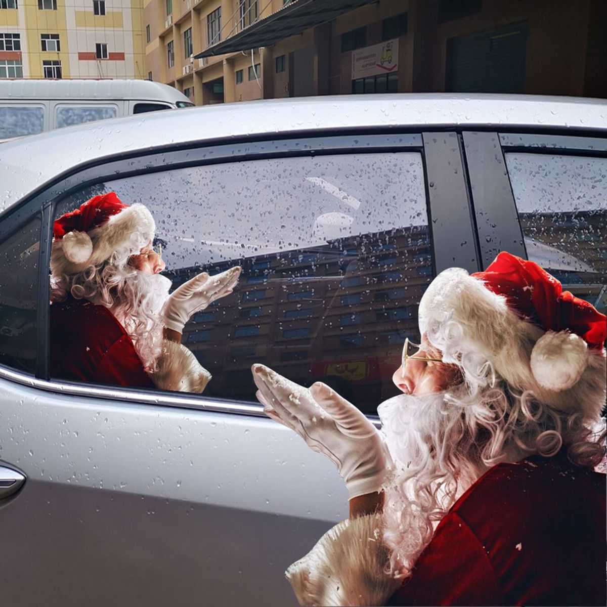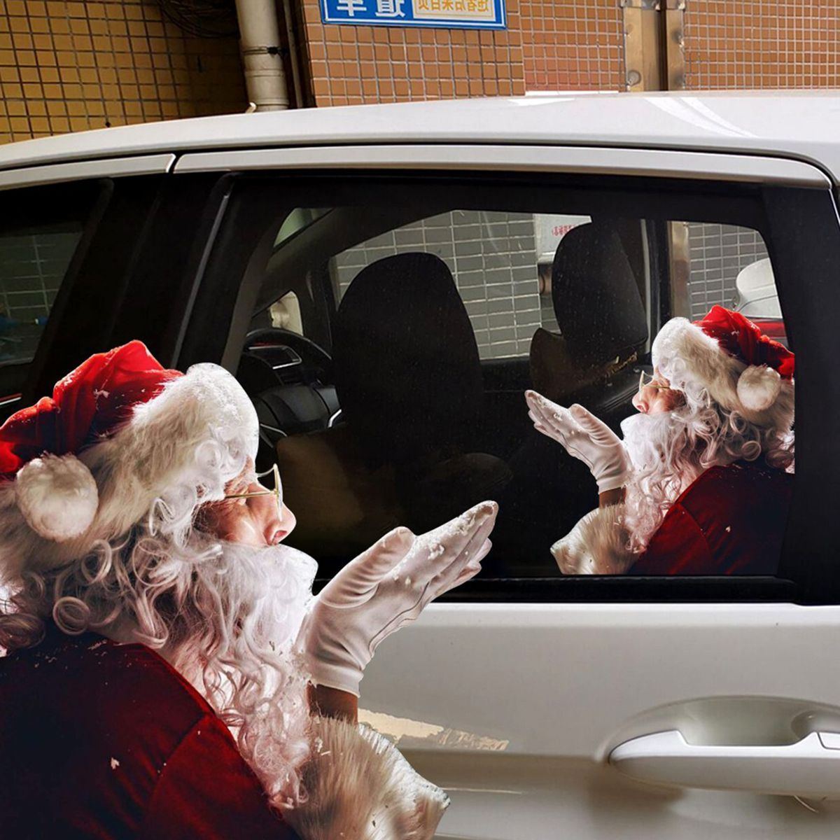 Santa car window stickers to decorate your car windows(left amp; right), perfect for Christmas.