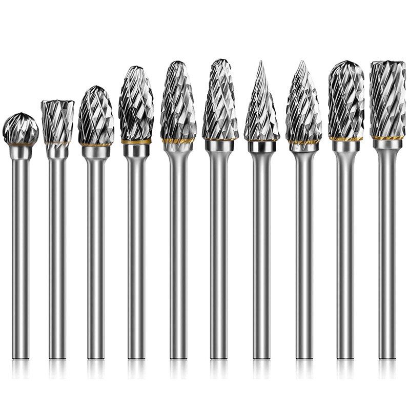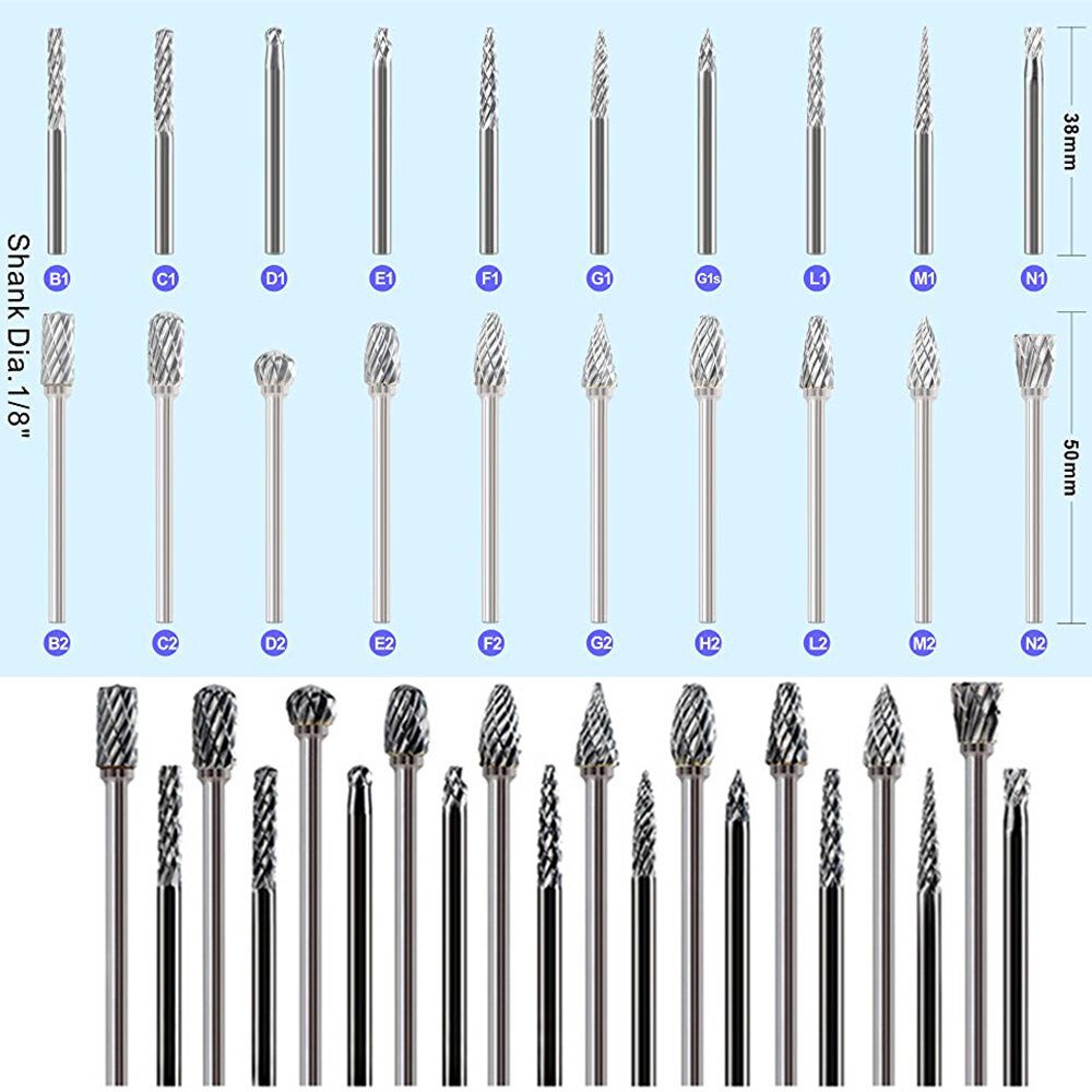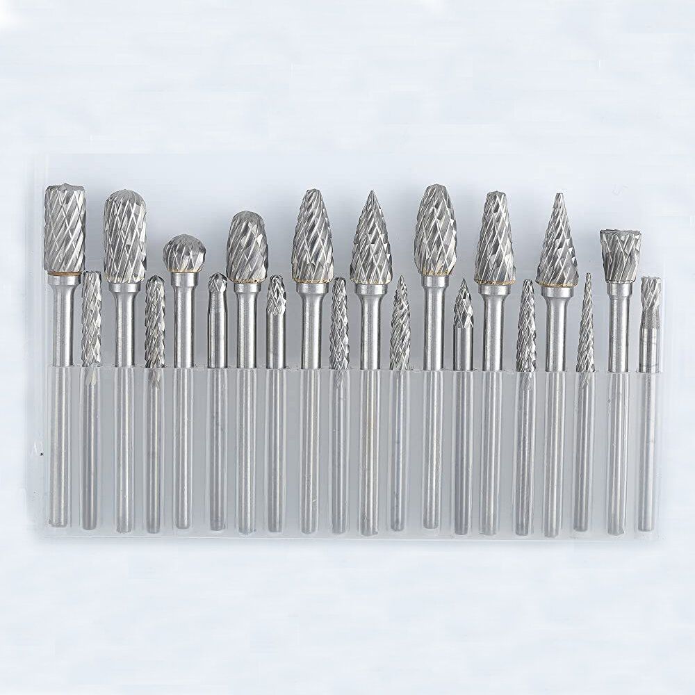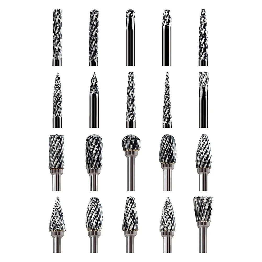 20pcs Tungsten Carbide Burr Set Double Cut Steel Rotary Die Grinder Bit Shank Carving Set